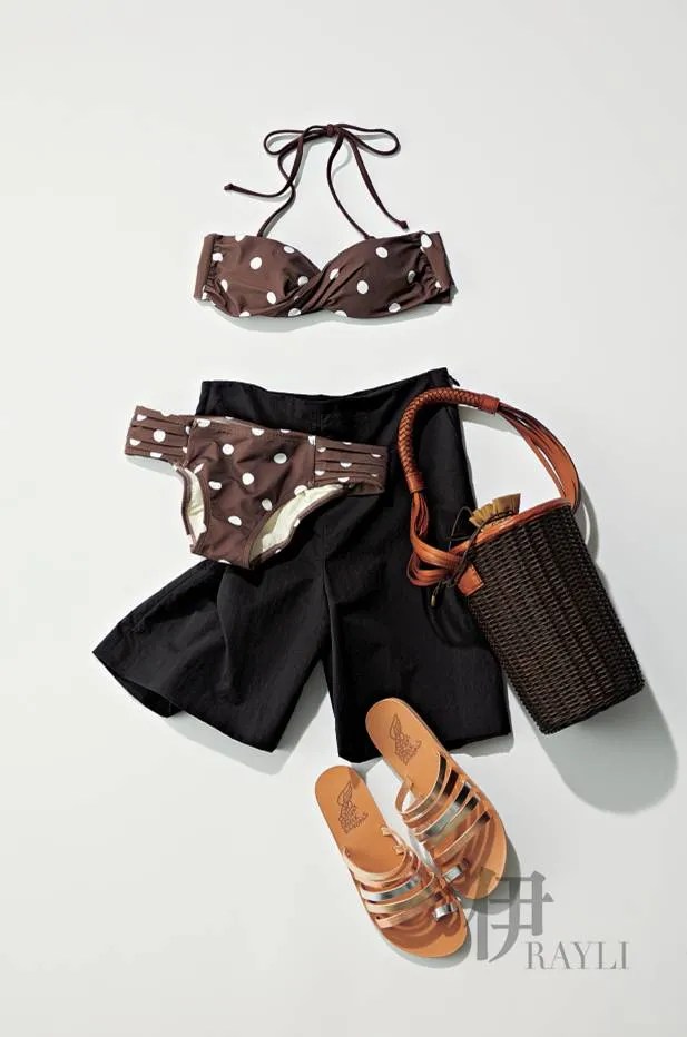 比基尼 约1560元 Pualani 短裤约780元 ENFOLD 包 约1380元 ZACARIAS 凉拖 约1380元ANCIENT GREEK SANDALS