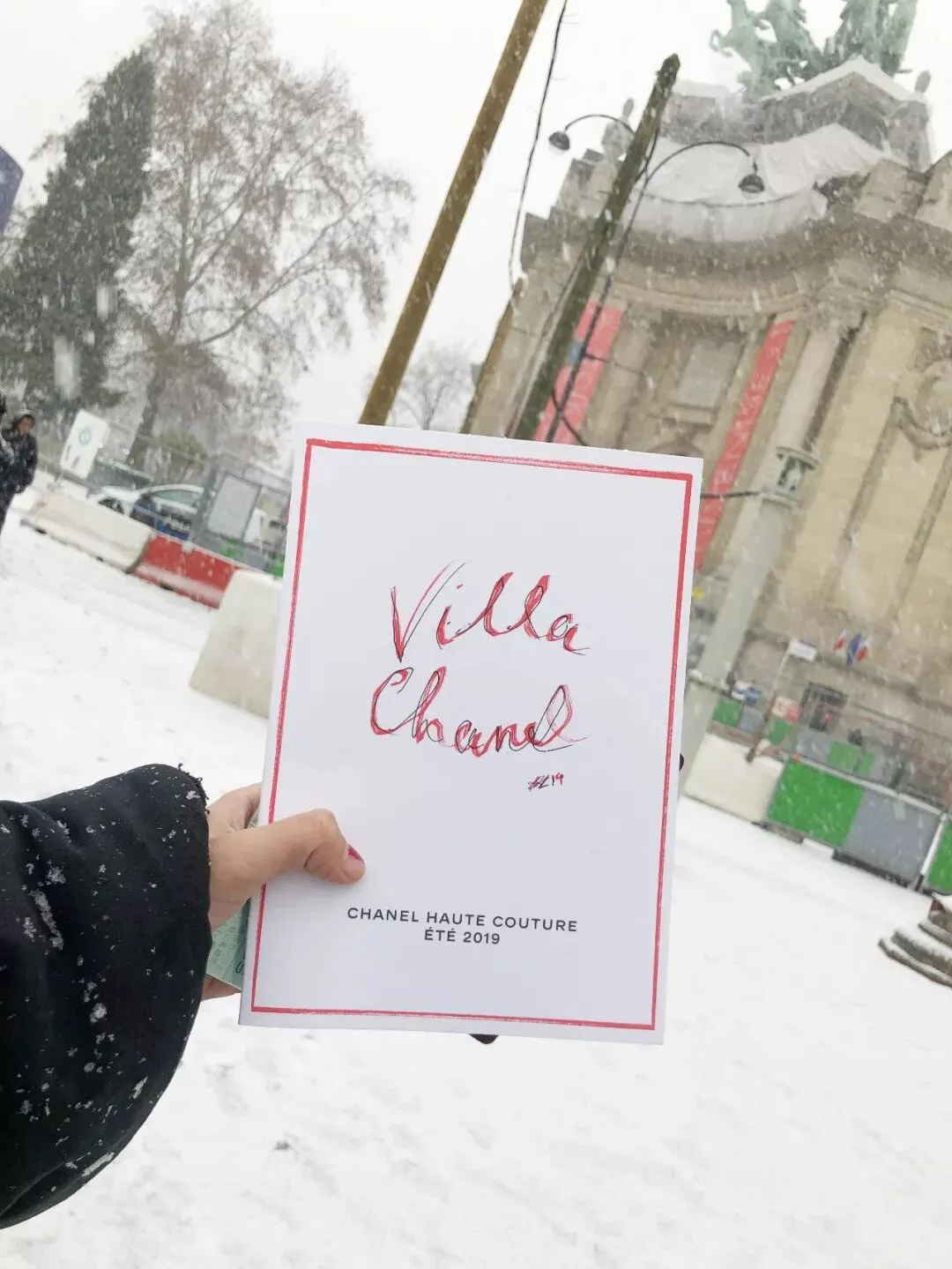 邀请函红色线条白色主题并没有透漏出丝毫有泳池相关的元素,一贯简洁风格。前方鹅娘搓搓手表示巴黎下大雪了,白雪皑皑的大皇宫外景美到尖叫,而内景蓝天、绿地、椰子树、游泳池简直世外桃源。