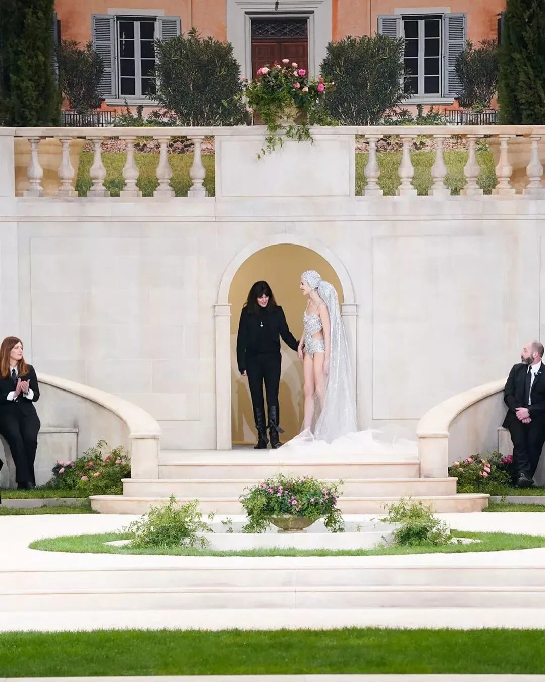 更更更为关键的点是:牵着她压轴出场的人竟然不是老佛爷!而是 CHANEL 创意工作室总监 Virginie Virard。鹅正大胆猜测老佛爷这几年会不会退休,官方消息称卡尔·拉格斐先生因身体疲倦,委托香奈儿创意工作室总监Virginie Viard代为谢幕,向来宾致谢。