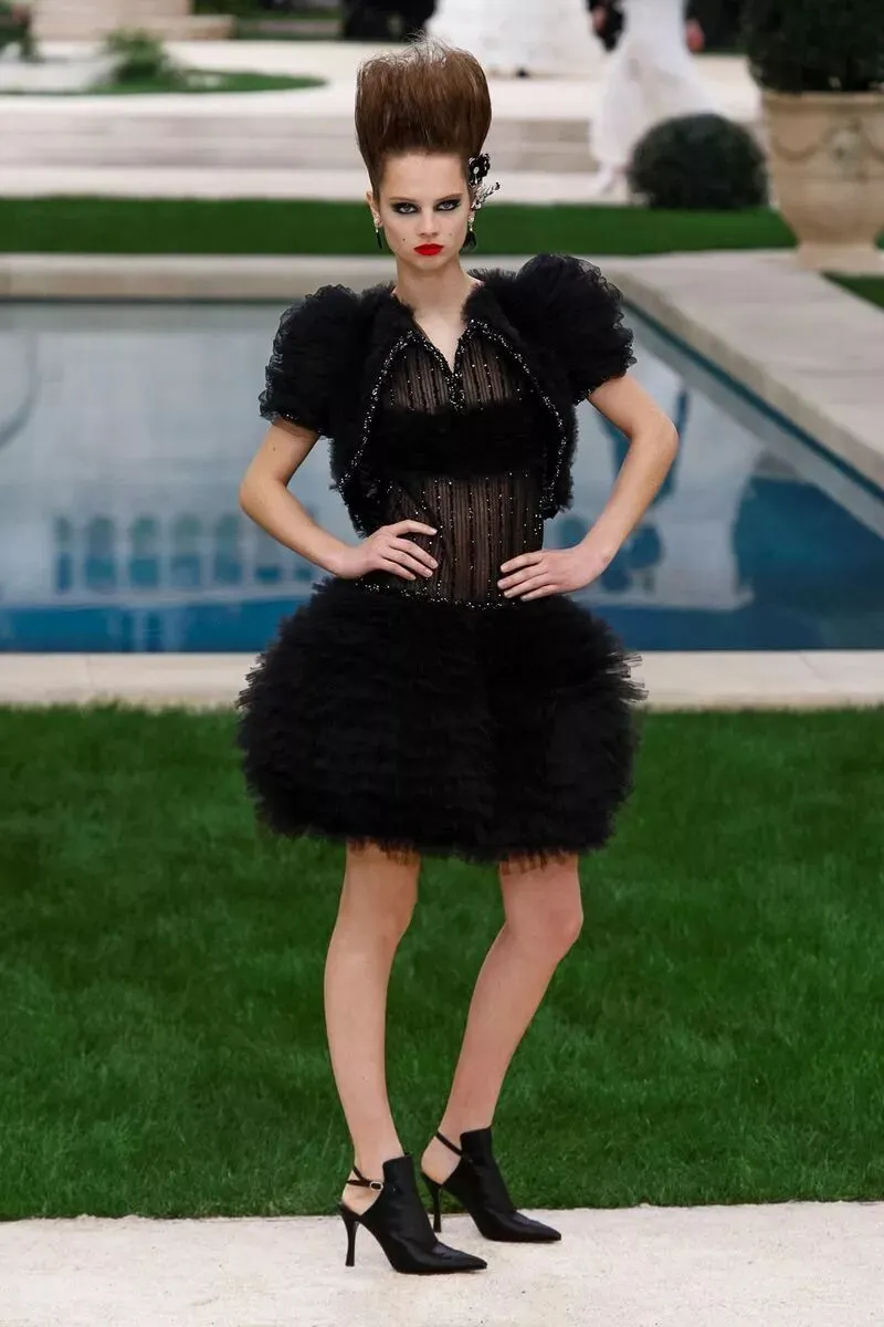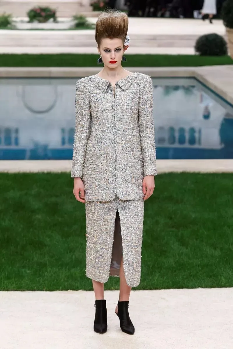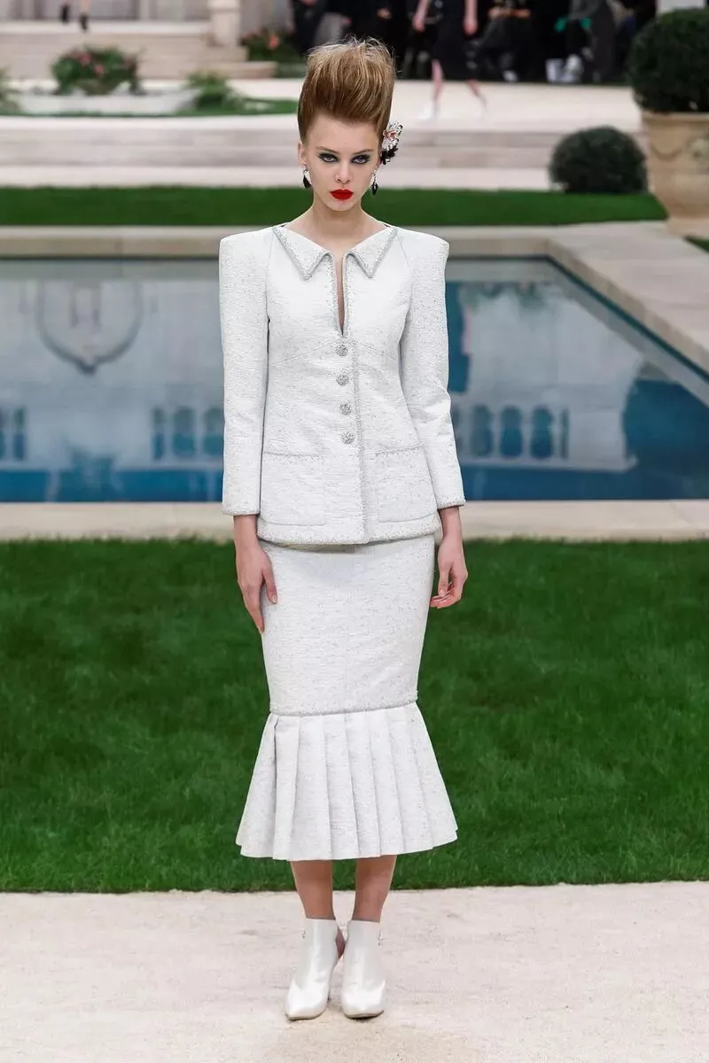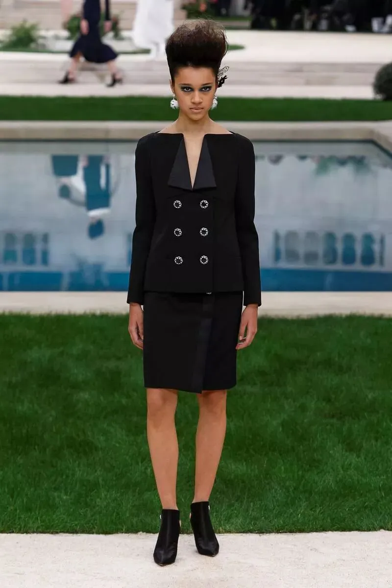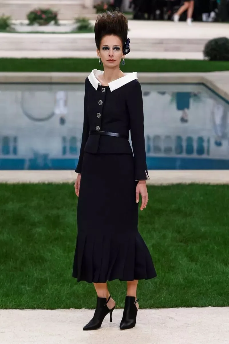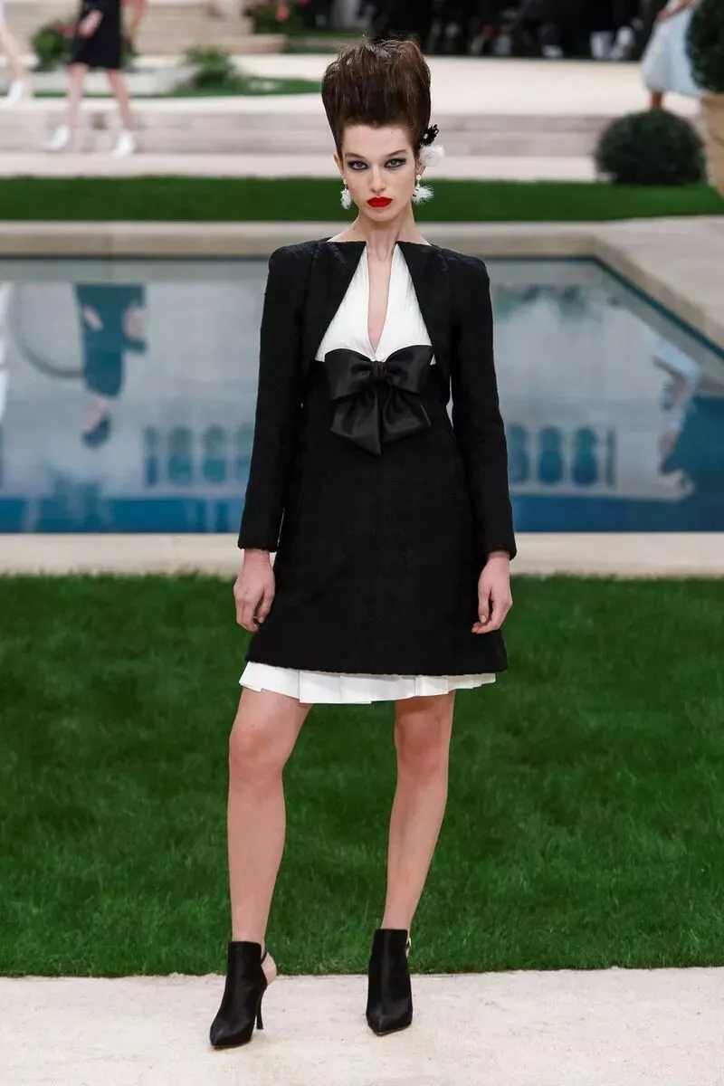 沿着泳池边各位身着精致的高级定制服的模特陆续走来,身上的软呢元素、黑白经典、及套装礼服裙依旧是香奈儿 CHANEL 的经典单品,在此基础上,今年又有什么不一样呢?