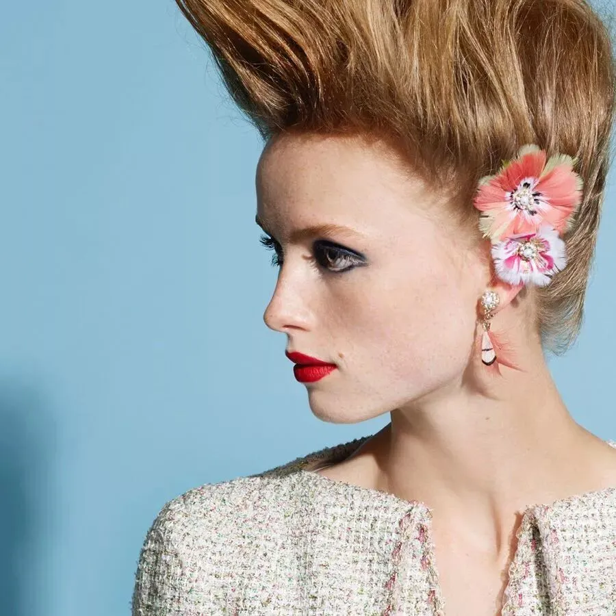 谢幕模特的高发髻更是显眼,香奈儿本季灵感来源十八世纪,鹅娘大胆猜想,这次谢幕的发型造型很可能灵感来源于历史上最有名的绝代艳后 Marie antoinette,当年她还是哈布斯堡王朝 14 岁的公主时,奥地利为了缓和与法国的局势,安排她嫁给路易十六,成为了法国的太子妃。后因政治而死,生前挚爱高发髻和盘发造型。