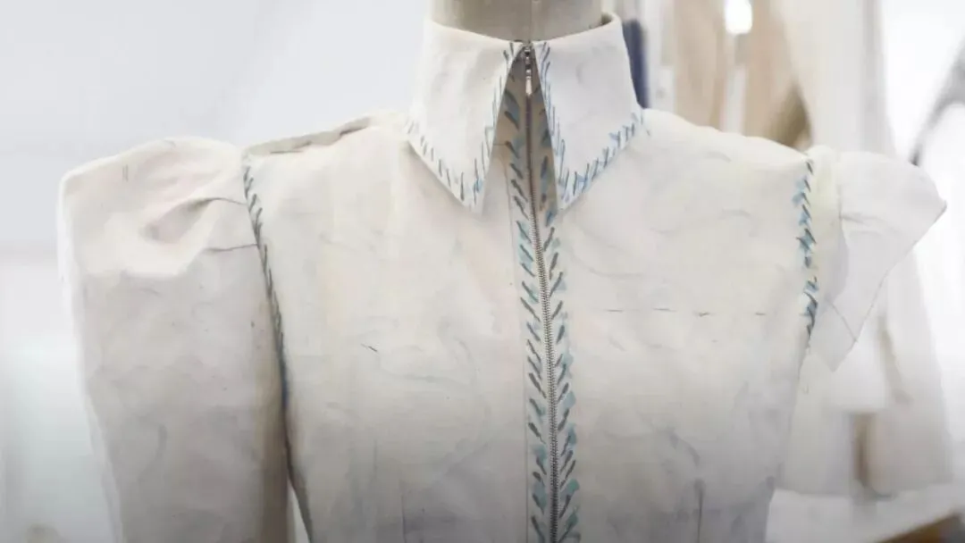 裙装上的每一道横向暗褶均为手工制作,需耗费350小时;乌干纱连衣裙上的花卉刺绣采用羽毛制成,风琴褶由一针一线的收缝打造成形;丝质轻软衬衫的菱形缩褶以手工缝制,运用650颗珠子将其固定成型;黑色螺旋式裁切皮革连衣裙以梯状蕾丝赋予精致轻盈感;白色套装饰以满幅亮片刺绣,其灵感源自法国万塞纳皇家瓷器厂(Manufacture de Vincennes)的珍贵作品,以非凡工艺将服装化为真正的艺术品。