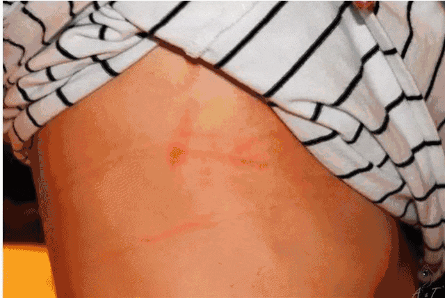 胸下围、肩部、背部活生生被勒出红红的印子,一整天都被束缚着。
