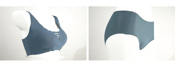 这款内衣根据亚洲女性的胸型设计,做到不用钢圈,全身没有任何胶骨,整件内衣都柔软无骨,可以随意折卷。