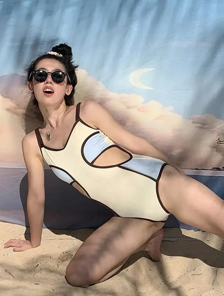 还有这种镂空、挖洞的连体款,露肤面积适当的同时,不会觉得暴露,设计感也疯狂拉满。