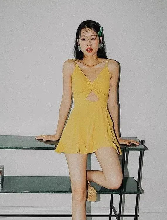 我最喜欢它家的V领+超高腰设计款,虽然没有繁杂的设计,但显瘦、显高一绝,微胖保守女孩可以放心冲!