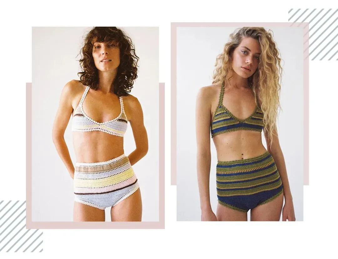 因为材质比较特殊,再加上针织沾水后会增重的缘故,所以设计上就偏向于简洁款,一般以三点式的比基尼居多,偶尔再加上一些吊穗或者镂空的设计,简简单单又不失质感,非常喜欢就是了!