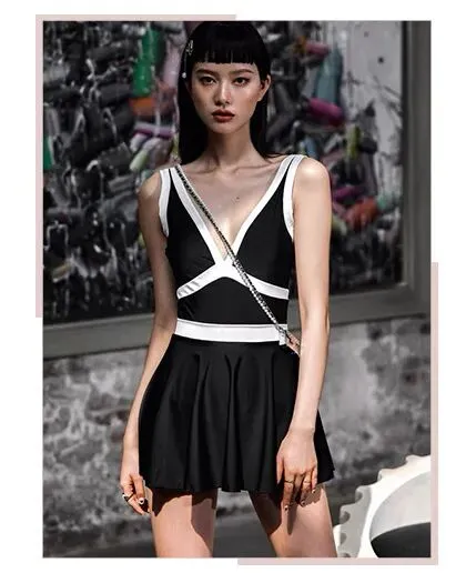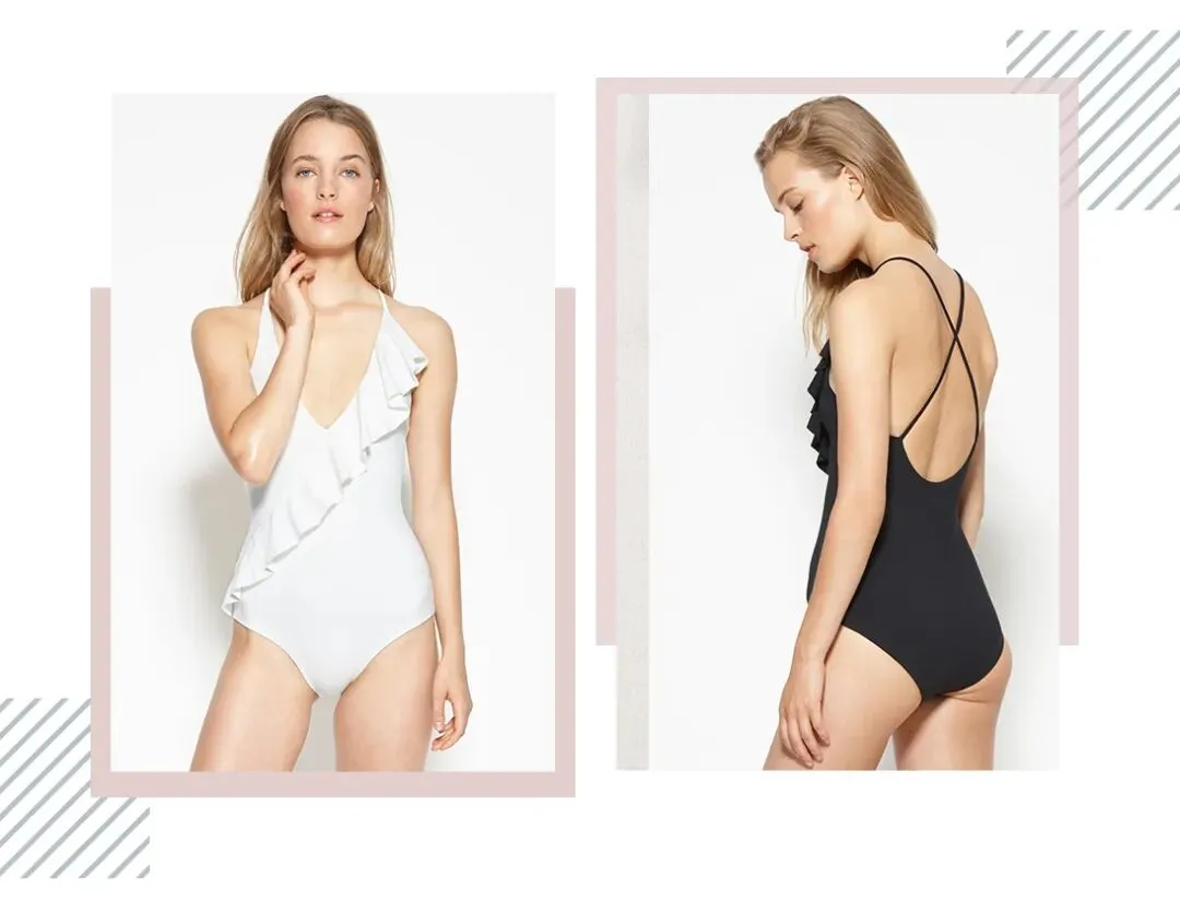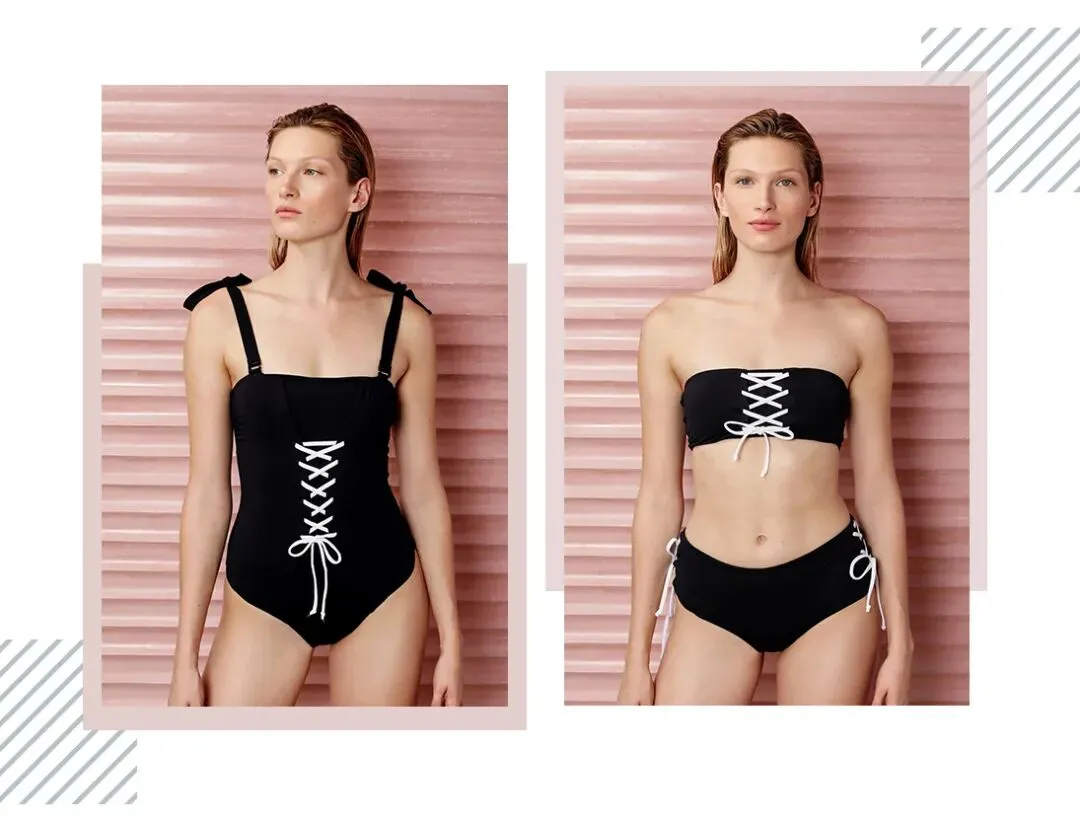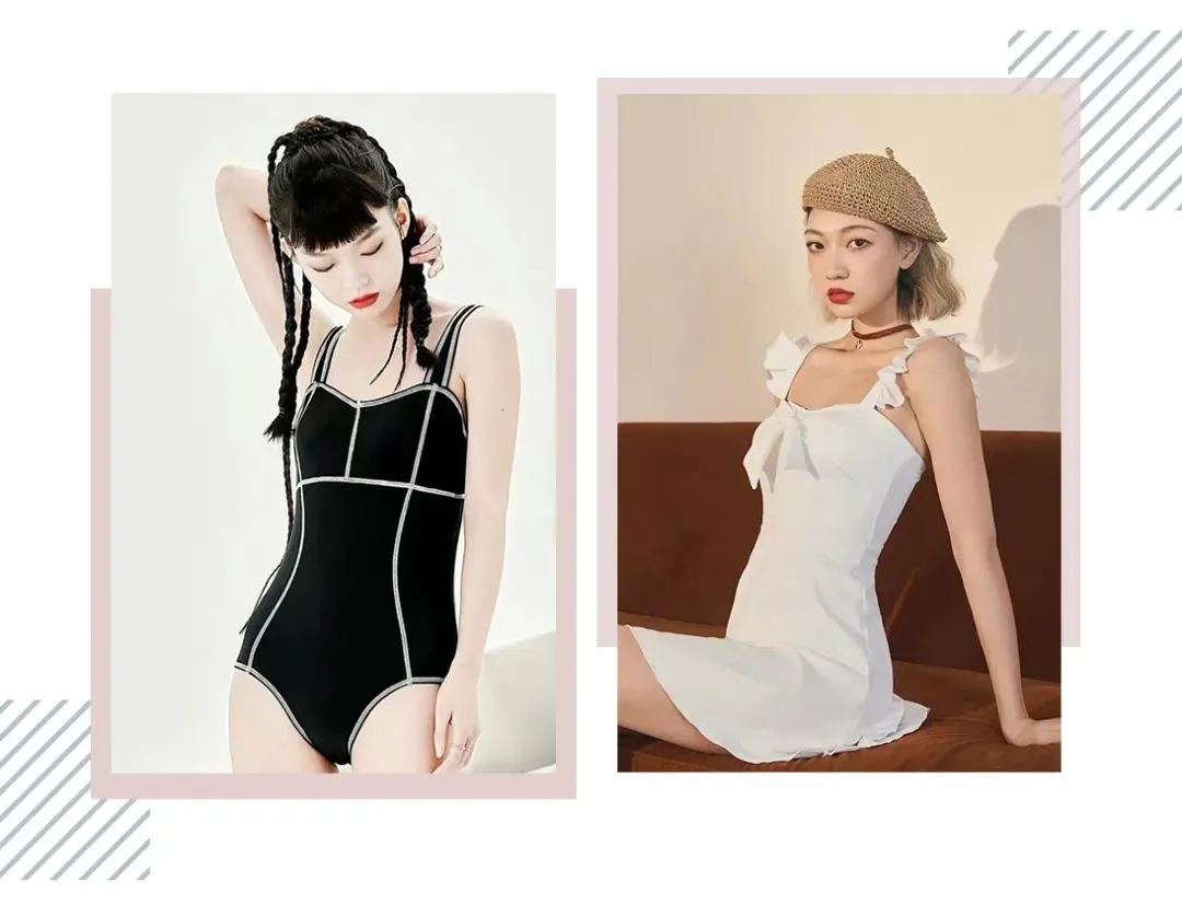 虽然黑白色系的泳衣听起来好像不够出挑,但其实风格可以百变,只要在设计上稍作心思,就可以性感和少女来回切换。