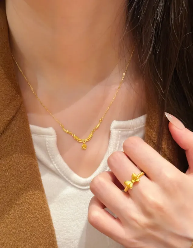 选购建议一定要记得项链长度,42cm是最适合亚洲女生锁骨线的长度,太短会卡脖子,太长又会显得没有精神。法式小巧设计其实不挑脖子粗细,反而更适合锁骨线条不明显的姐妹,显瘦又有气质。保养的话,足金饰品要温柔对待,洗澡、运动、做家务建议摘下来,避免和汗水或清洁剂接触。平时用首饰布擦一擦就行,收纳最好用软袋或独立首饰盒,和其他硬饰品分开存放,这样小蕾丝细节才不会被刮花。