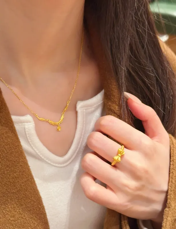 穿搭和叠戴上,这条项链简直就是氛围感制造机。它本身小巧但设计感很足,单戴就很好看,适合那种日常通勤、上班、逛街都能一直戴着的类型。如果想要更有层次感,可以试着和极细的素金短链叠戴,这样会有一点点法式慵懒的感觉。冬天穿毛衣或者大衣,露出一点金色的小链子,看起来特别温柔俏皮。还有就是搭配同系列的戒指,像我最近很喜欢把蕾丝玫瑰项链配蝴蝶结黄金戒指,氛围感瞬间升华,拍照真的太出片了!