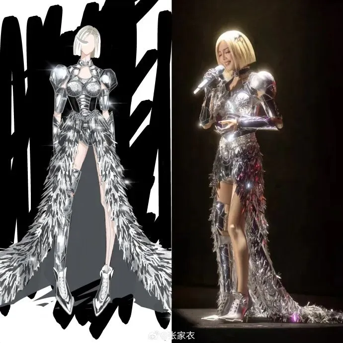 特别是演唱会舞台上张家衣亲自设计的这几套演歌服,一套比一套出彩。