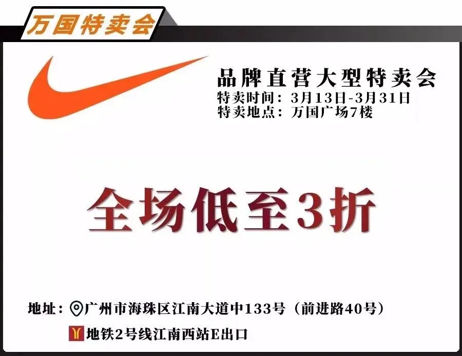 当前位置:首页>美女资讯>NIKE耐克 胸衣149元、T恤199元、运动鞋249元 【NIKE耐克 品牌直营大型特卖会】
