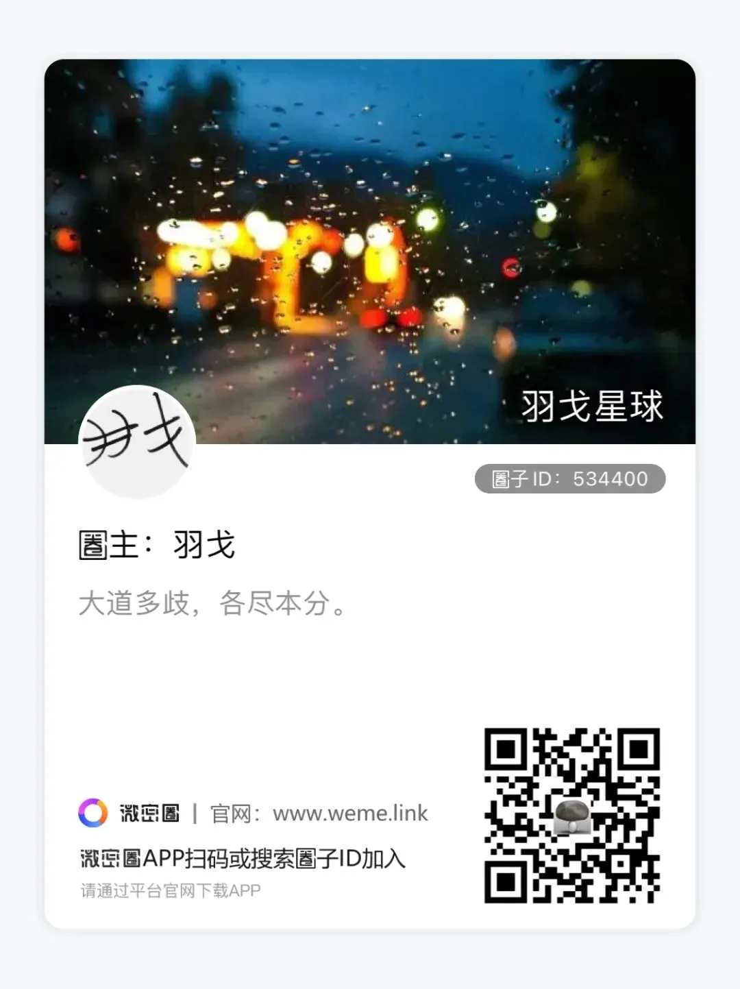 【加入方式】一,扫码(需下载APP,按提示兑换积分等);二,如果扫码不成,可进入网页版,搜索“羽戈星球”或“圈子534400”加入:http://app.weme.fans/