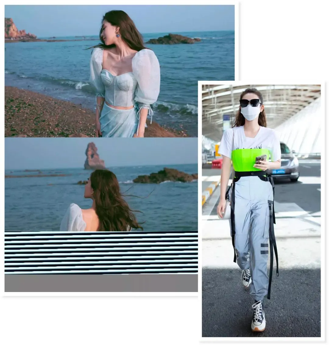 AB新发布的海边合集,这身look也是暗藏胸衣,还有戚薇最新的街拍,也是叠穿了胸衣出门。