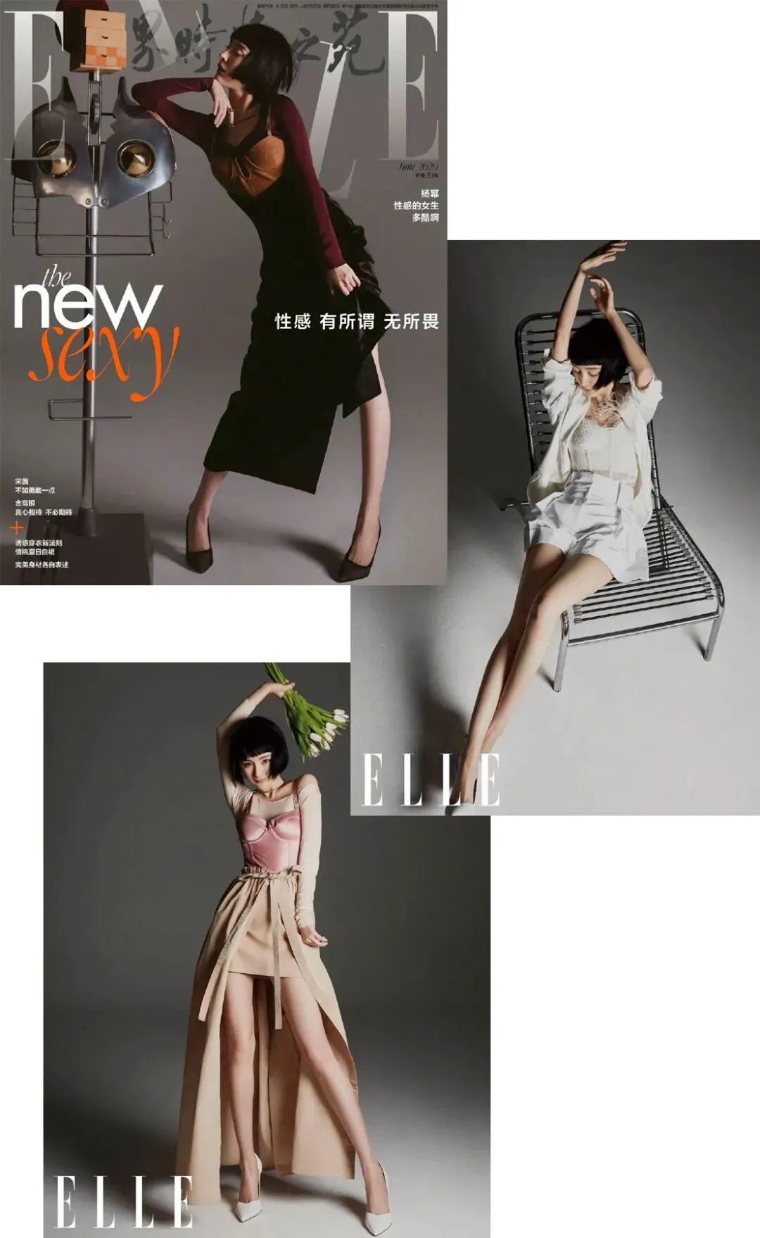 杨幂早就在《elle》六月刊的封面上还演绎过不同风情的胸衣穿法。