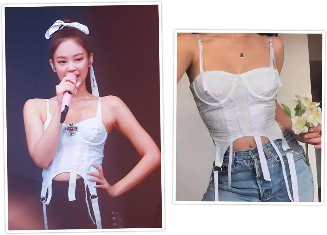妮妮在演唱会上穿过的白色刺绣系带胸衣,奶凶又酷飒,不愧是性感小野猫。