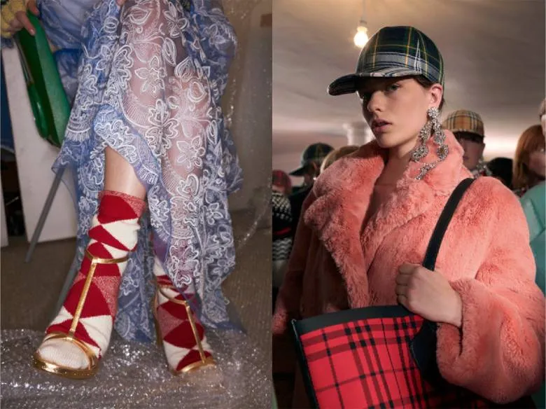 设计师就献出了轻薄蕾丝加格纹袜、