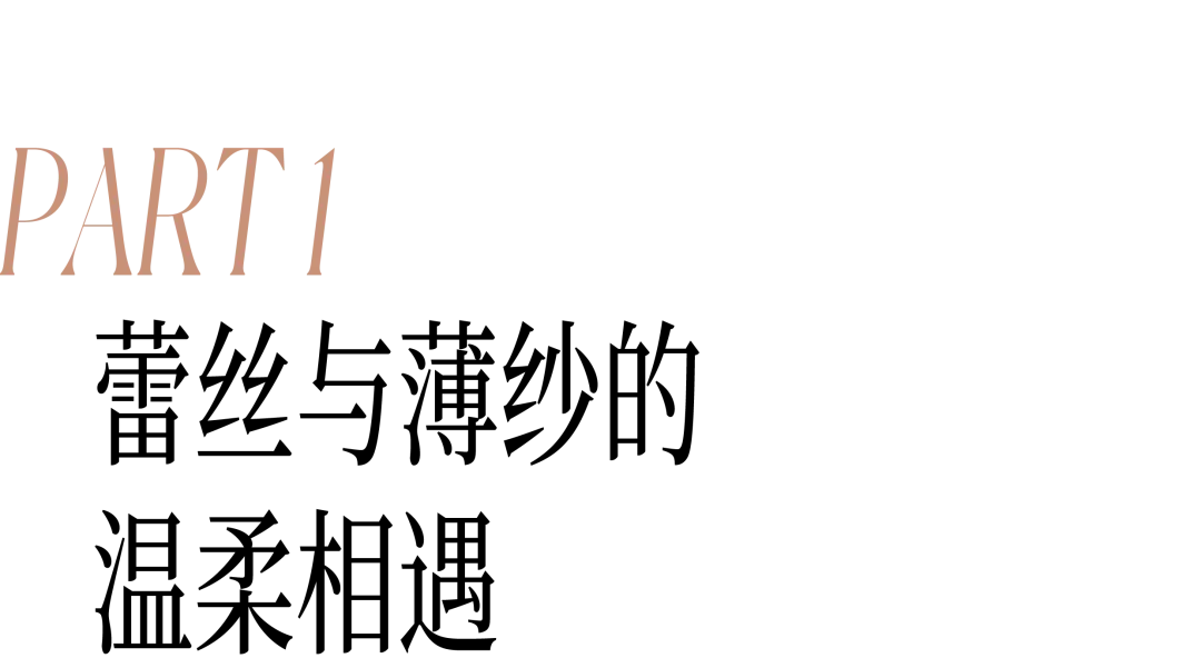 属于女性的浪漫永不凋零,无关年龄,只要拥有年轻的态度和直面自我的勇气,就能怀有迷人的女性魅力。薄纱蕾丝是对女性风格的另类诠释,融合传统与现代的审美,对浪漫元素结构重塑,通过穿搭去表达内心的所想、所爱。