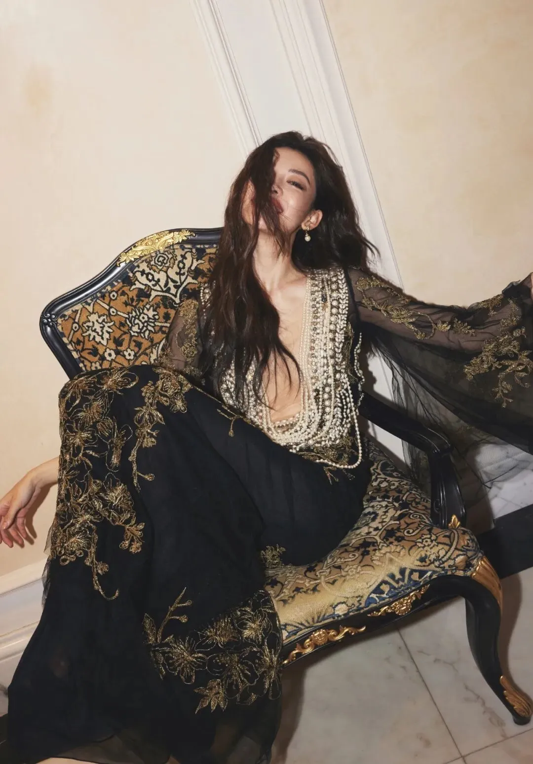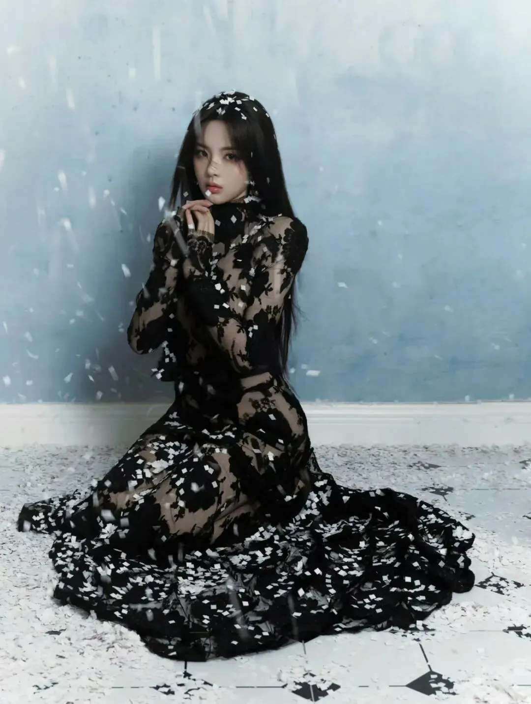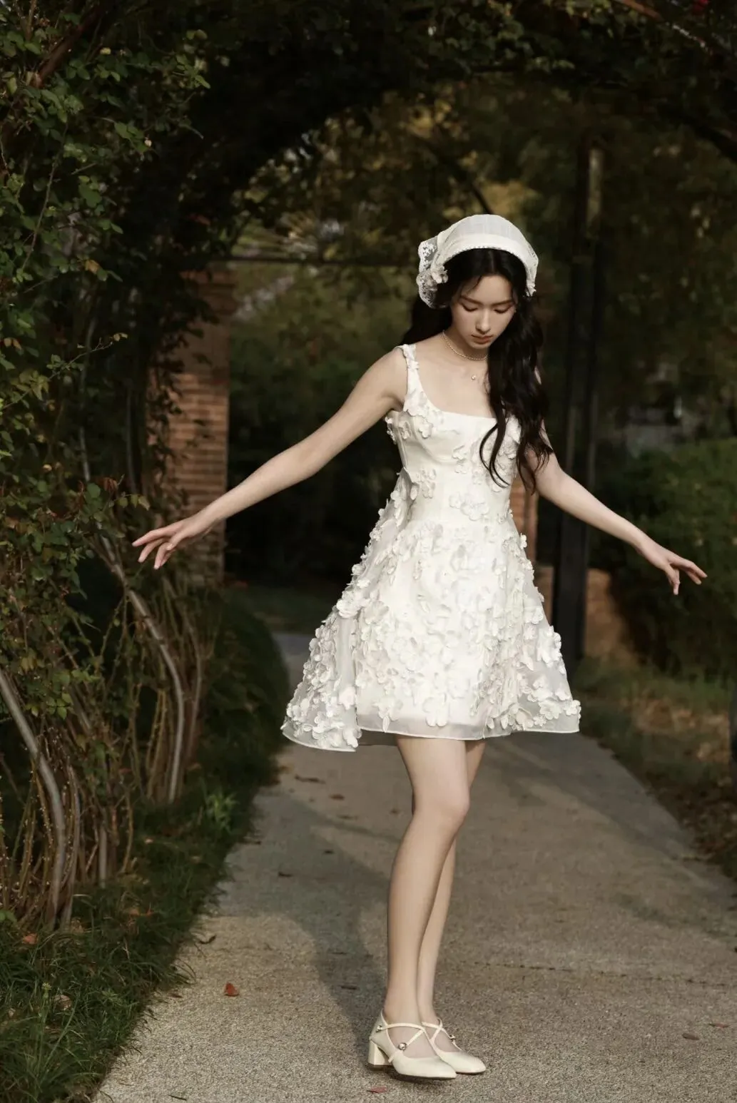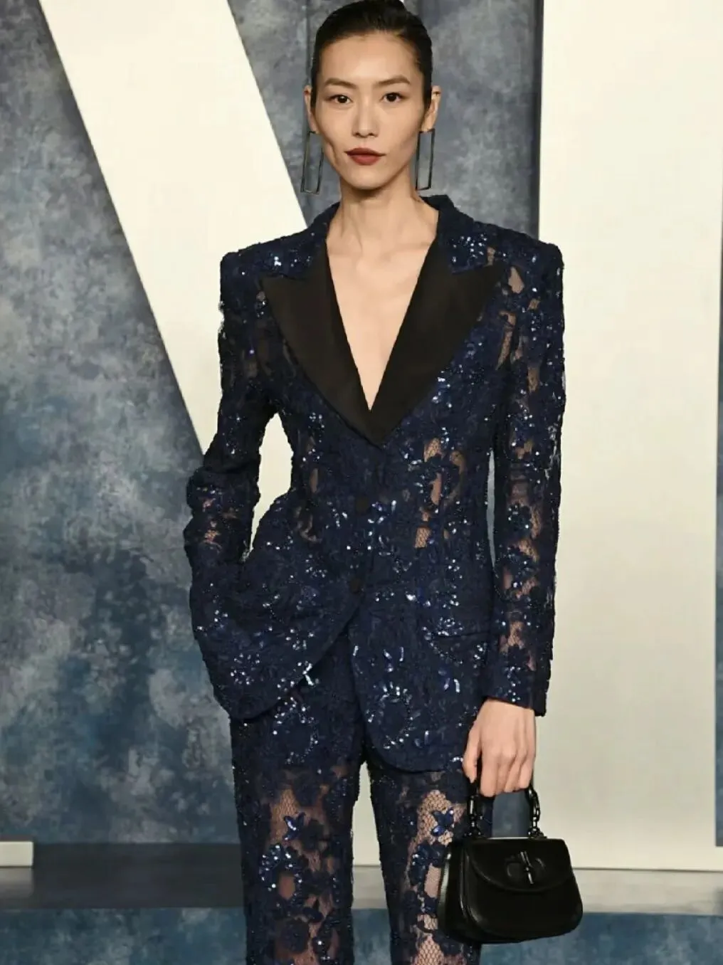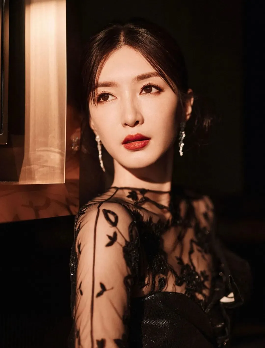 江疏影优越的美腿一直以来都是她的标志之一,这一身黑色蕾丝花朵刺绣薄纱黑裙将她的优点发挥到了极致。薄纱裙的透视效果,使她的腿部线条时隐时显,给人一种朦胧的美感。克制的黑色此刻更添风情,勾勒出迷人的曲线美。于光影摇曳之中熠熠生辉。