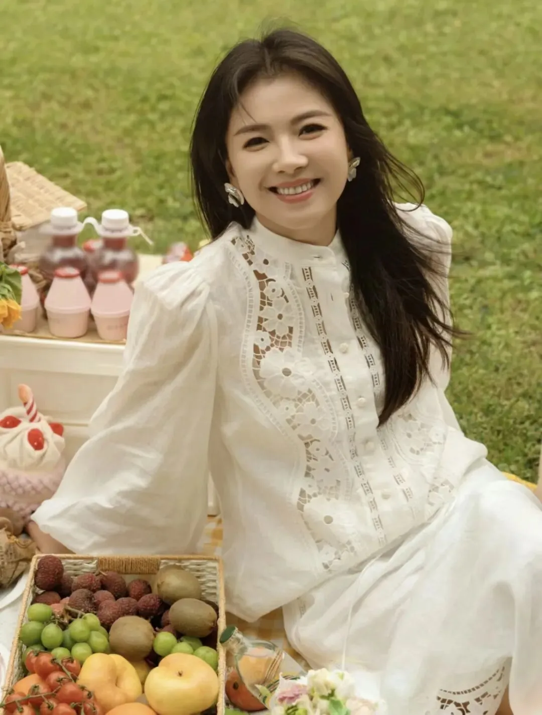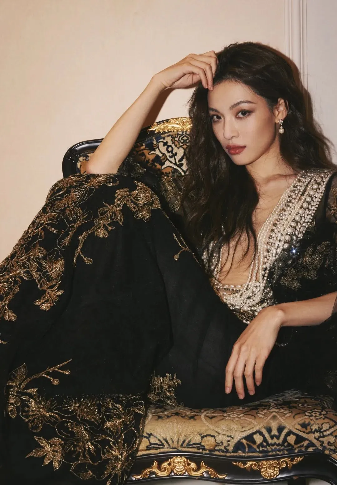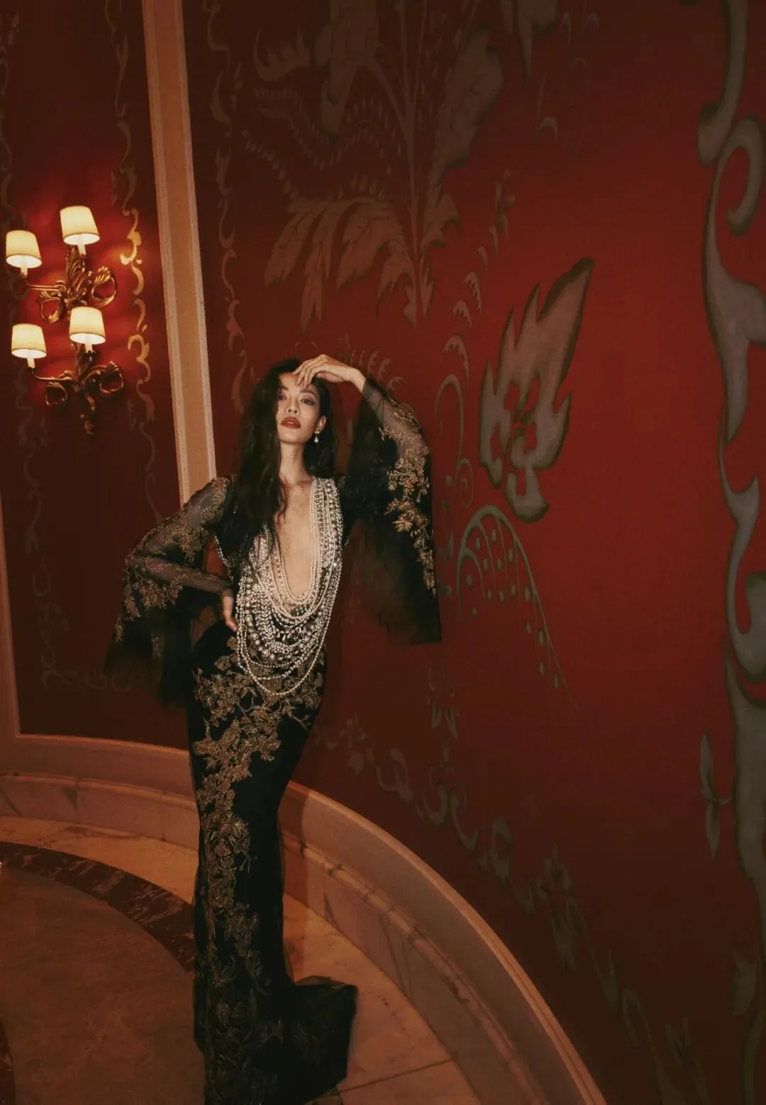 钟楚曦很会描绘自己的美。一袭镂空珍珠蕾丝长裙,简洁而华丽,是她最拿手的风格,蕾丝花边犹如绽放的花朵,衬托出她如玉般的肌肤。而低胸设计,则展示了她优雅的曲线,散发出一种含蓄而强烈的性感魅力。向金丝借来的奢华,搭配蕾丝纱裙的梦幻,构成明艳夺目的气场,如同暗夜里与星光共舞的肆意玫瑰。