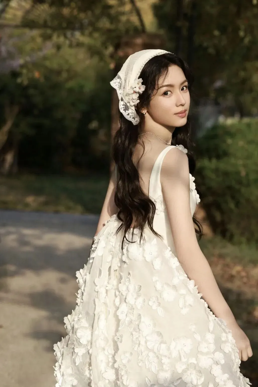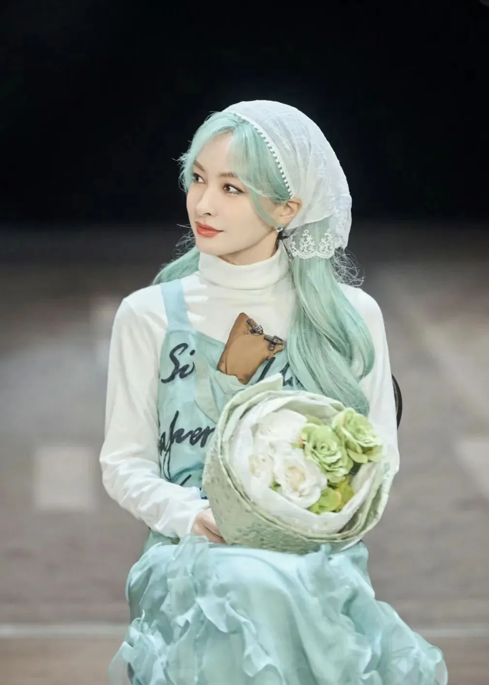 当蕾丝遇到头巾,简直是藏不住的优雅。对于那些少女心Max的女生来说,蕾丝头巾无疑是一秒变成小公举的绝佳道具。同样白色蕾丝质地的头巾,吴昕配合薄荷绿的头发,增添了几分田园的清新气息。而周也则戴出了法式的慵懒浪漫。