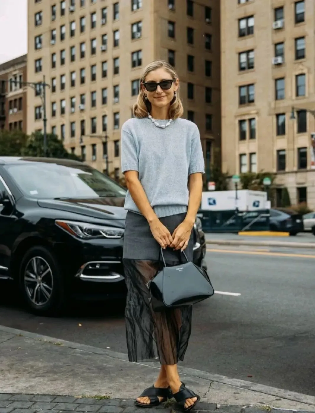 如果不想穿得太柔美,可以搭配中性的卫衣、西装或者廓形风衣。不同风格、材质的叠搭,会碰撞出令人意想不到的效果哦~