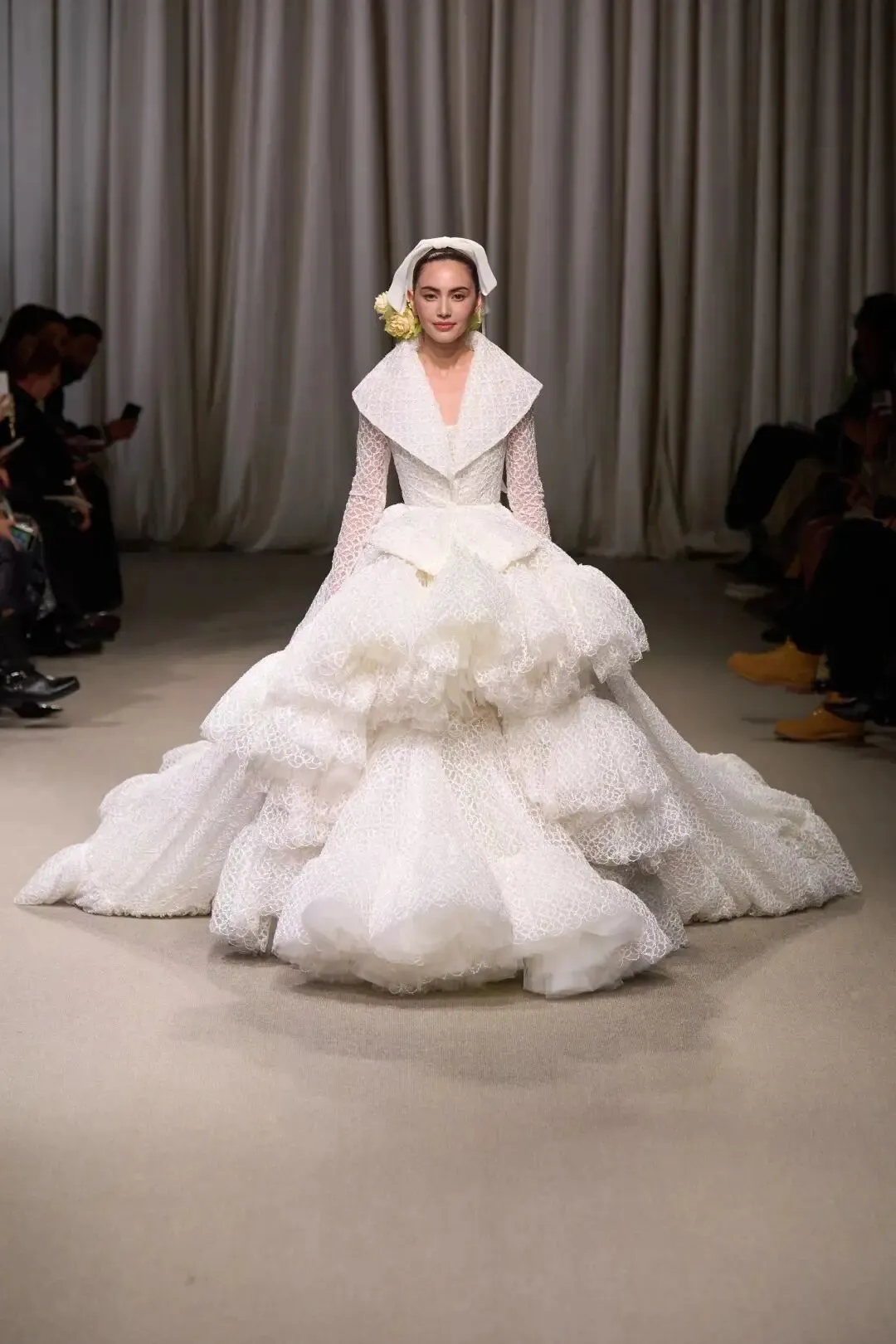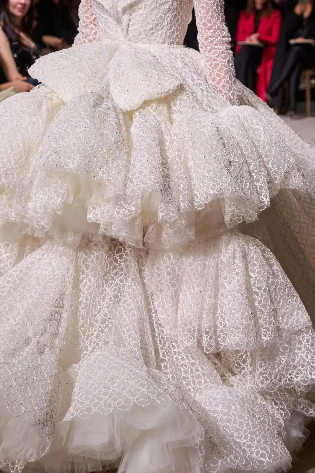 “没有什么能比一束鲜活的玫瑰更有生命力了。”Giambattista Valli本季春夏高定灵感采撷自玫瑰花园,以层层堆叠来塑造美轮美奂的空灵美景。纱质的繁复堆叠,配合幻彩的蕾丝,用色彩描摹出盎然春意。以浪漫的表现方式,实验性地呈现出“春意尽美”。大胆直接的漏肩造型贯穿始终,丝带缠裹,宽大蓬松的裙摆填补空缺,以极致华丽来重塑完美。