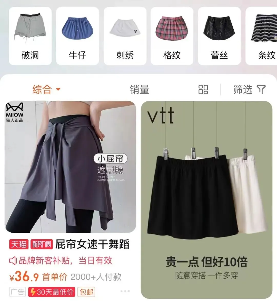 市面上,有「外遮」为主的屁帘、假两件,有「内补」为主的W贴、加厚内裤。成千上万的成交记录背后,是女性被一步步放大的身体羞耻。