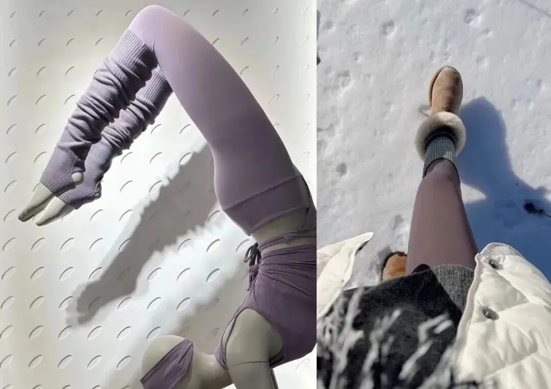 瑜伽裤品牌甚至推出了「瑜伽裤 + 袜套」这一 QQ秀穿搭,狠狠戳中老中人膝盖、脚踝保暖刚需