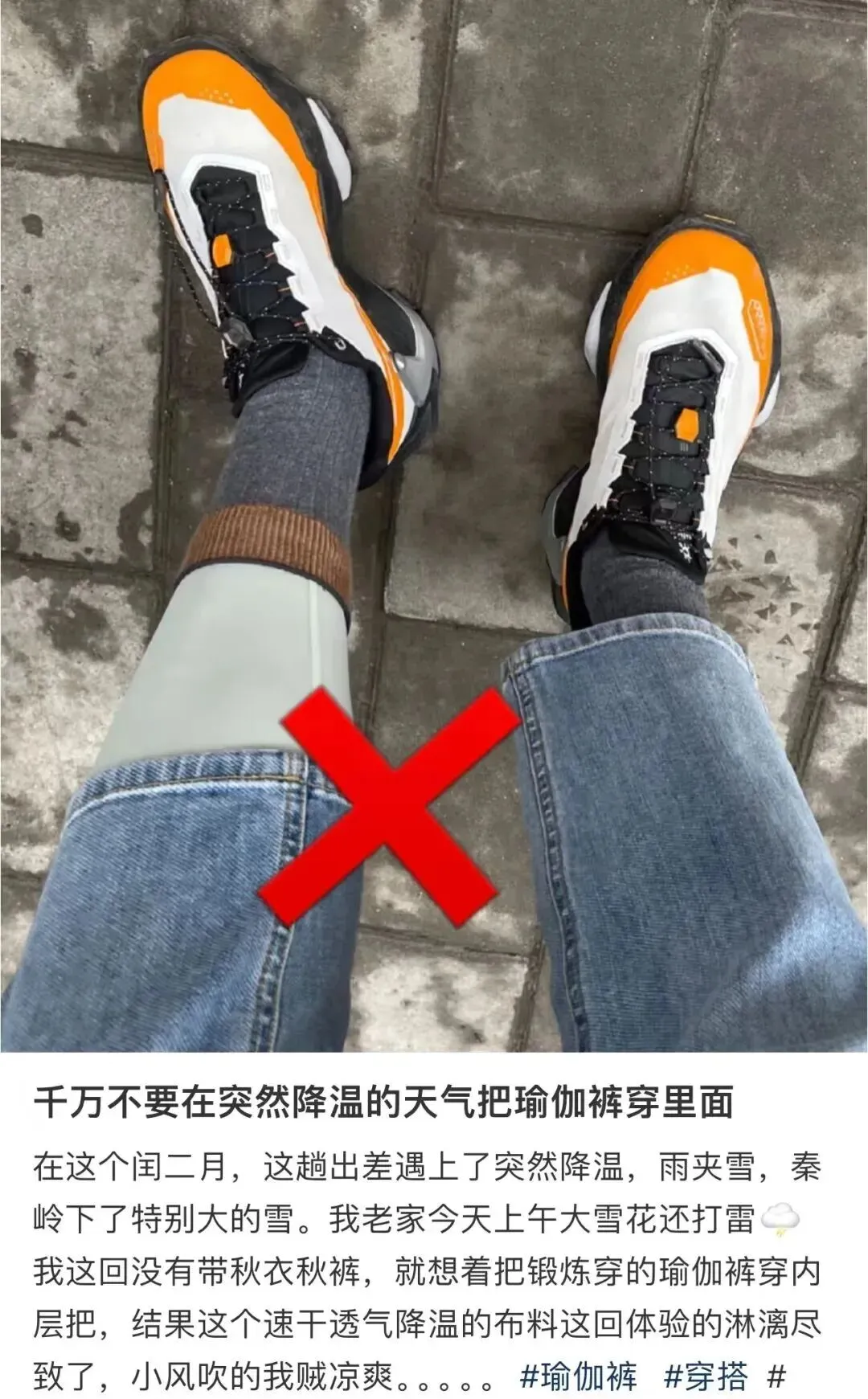 但反对声音也同样不小。不少网友发帖吐槽,怒斥「瑜伽裤特别透风,穿起好像腿嚼了绿箭似的」,用自己被冻出大鼻涕的血泪经验,奉劝大家千万别把瑜伽裤当秋裤。