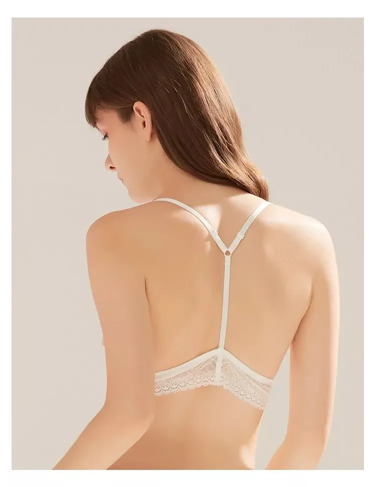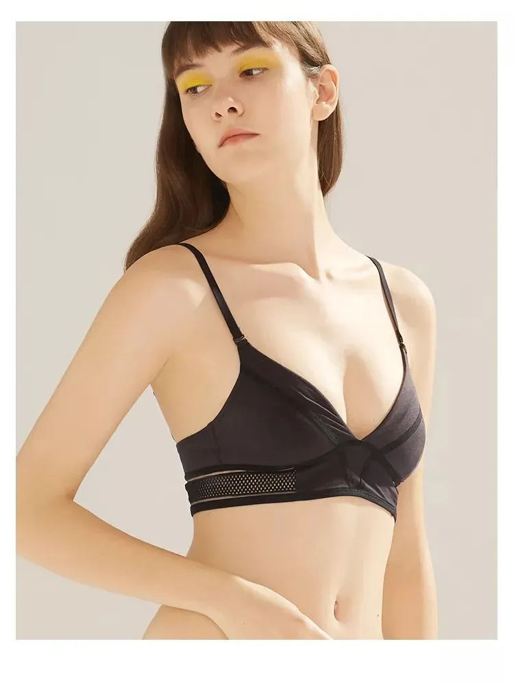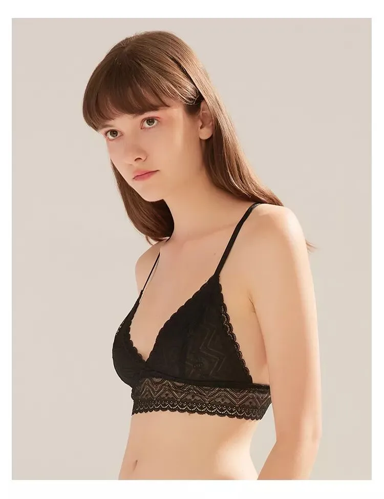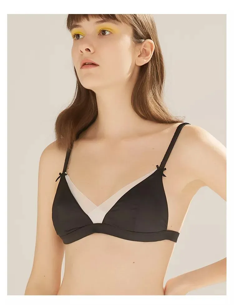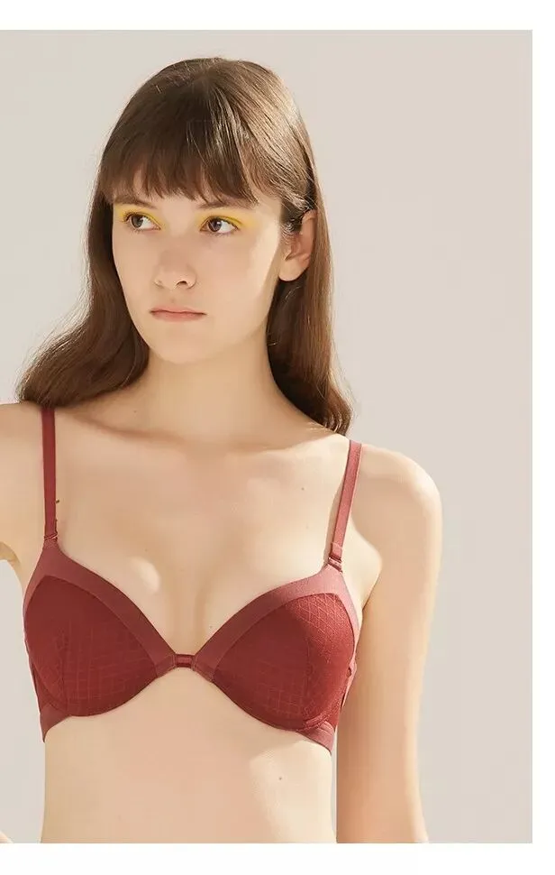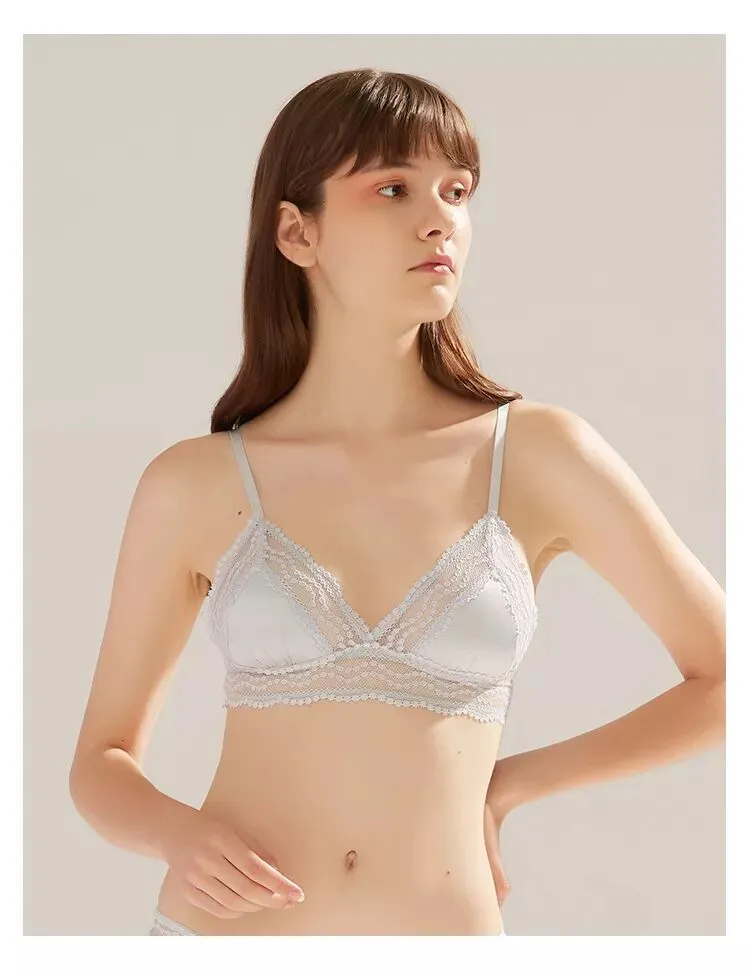一款是kiki文胸无背扣无钢圈0.4cm薄杯,底围的镂空织带设计,让这款多了一些运动气息。想入有春日气息的豆粉色,在冬天里期待春天。