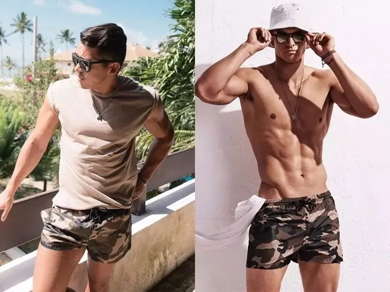 粗犷又时尚的迷彩变化一直是这几季男装的主要趋势,也延伸到了海滩裤上面,在海滩裤的设计上,再加入一些夏日的色彩或元素做变化,让迷彩展现男人之于更有阳光感。