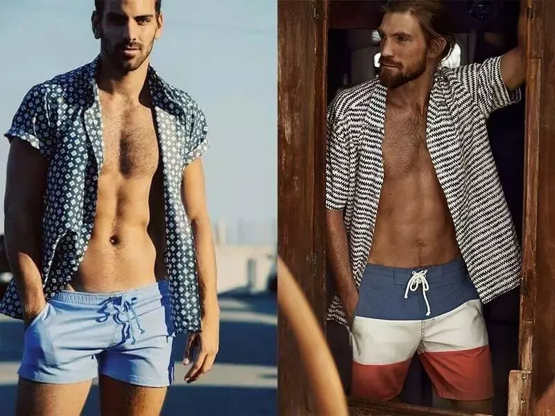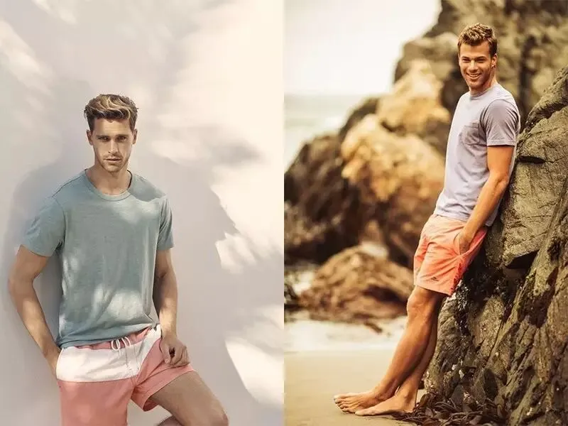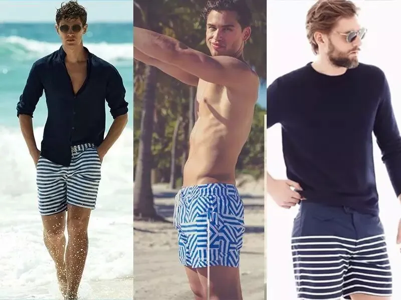 过去我们对海滩裤的印象,多半是宽松即膝,甚至是过膝的款式,但这都已过时,现在流行是短版合身的海滩裤,长度在大腿的中间 (膝上7-15 公分左右),让腿部的线条和肌肉展现,看起来腿更长也更性感。