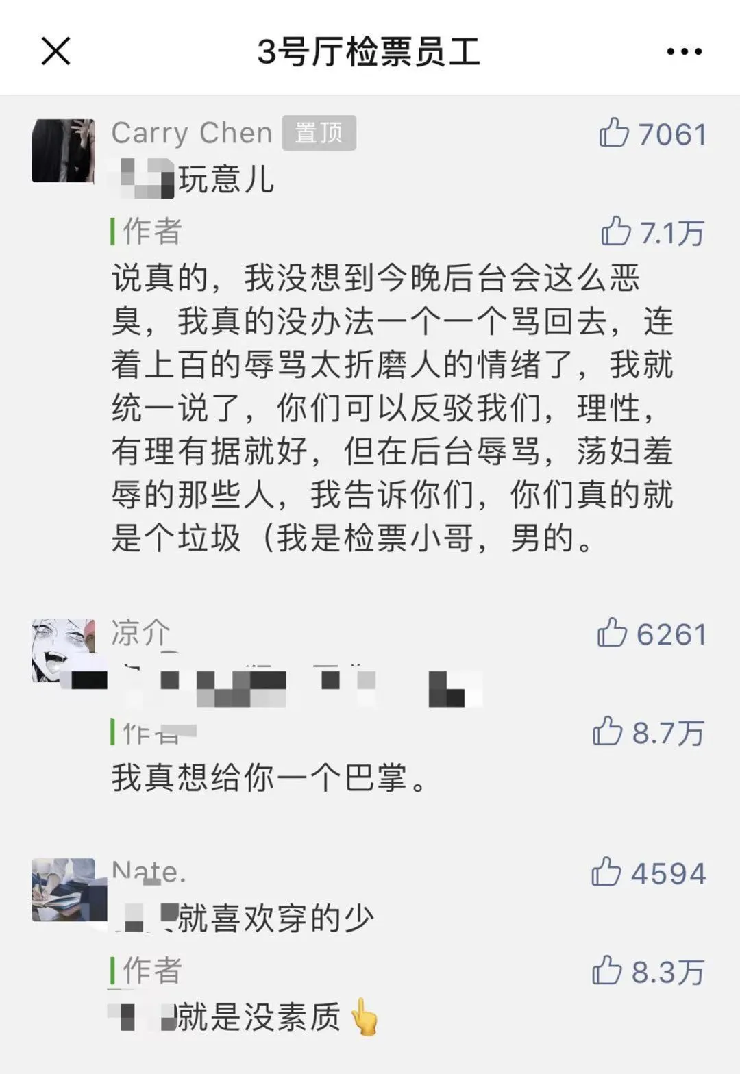 (由于语言过于低级作了打码处理