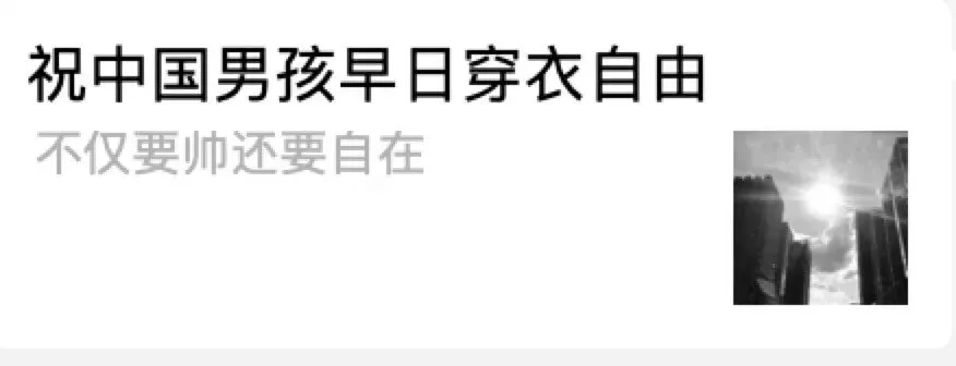 但是如果只从性别的角度来看的话,未免有些以偏概全,不论是之后爆发的对男性穿衣自由的讨论,还是北京比基尼自由的戏谑,甚至是男孩的“游戏自由”,我们都能发现,这个问题的重点不是“性别”,而是“自由”。