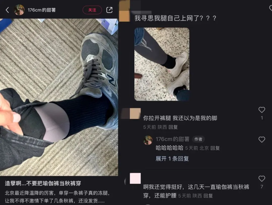 北方人认为,「瑜伽裤+加绒牛仔裤,张家口人的过冬搭配」,还有人表示「薄绒款的瑜伽裤更保暖,还不勒腿」,更有评论区直言「把健身裤当秋裤穿,外裤一脱就能运动,冬日运动百搭」。