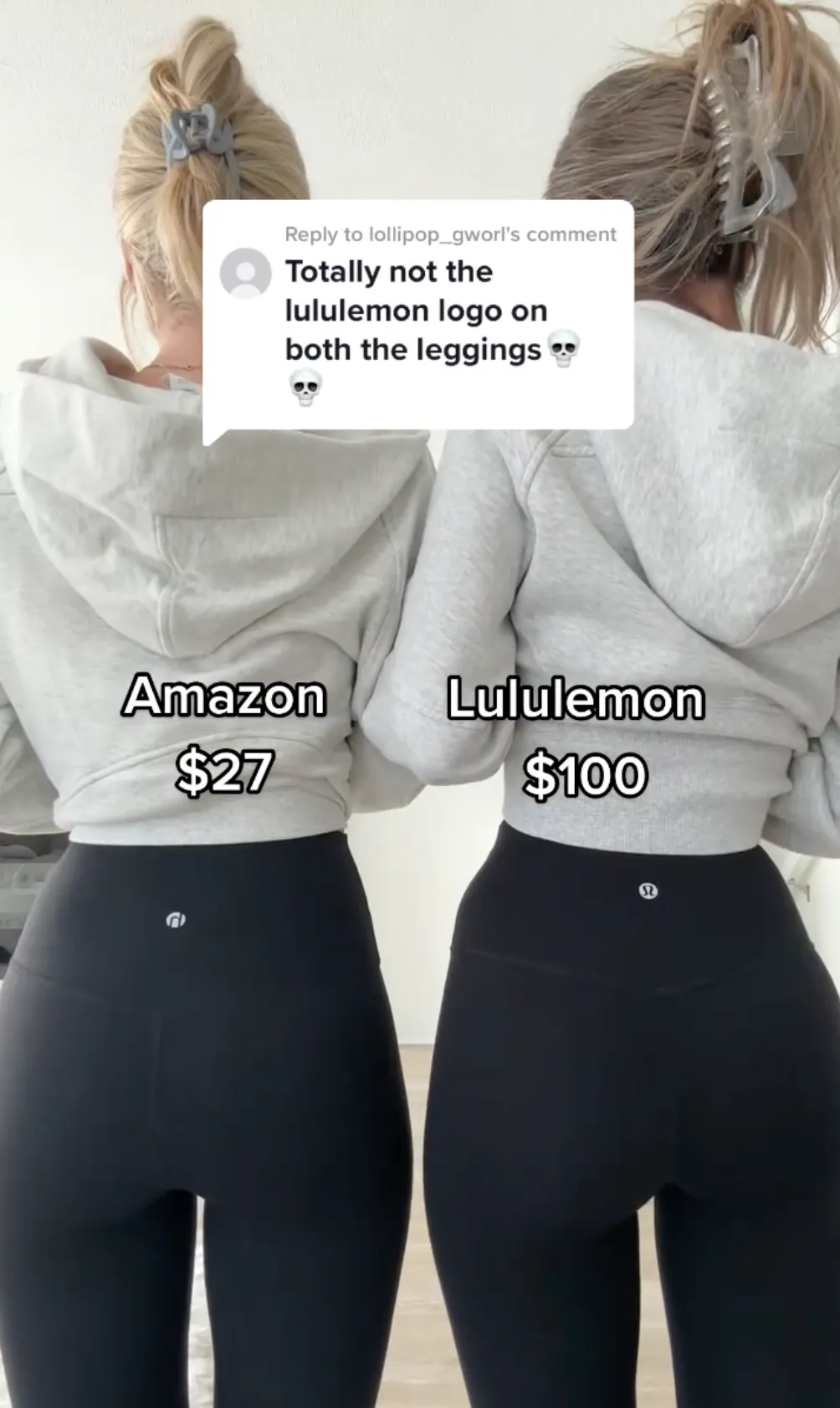 在海内外的电商平台上,随处可见走针、材质和样式几乎一模一样,但价格只有正品一半的平替款。甚至有浏览上亿次的tik tok标签“lululemondupe”,年轻人很自豪地在上面分享自己低价买来的假货,详细对比它们与正品之间惊人的相似度——与过去人们购买山寨时偷偷摸摸的态度完全不同。