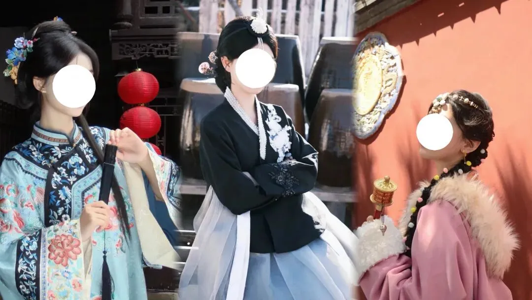 在景区穿着当地民俗服装拍照是“流水线公主”;