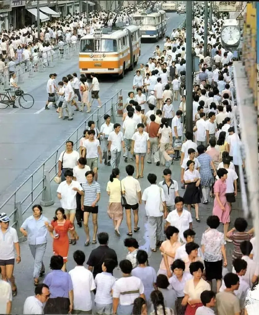 80年代的上海,男性“热裤”是当时的流行装扮。