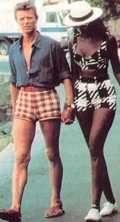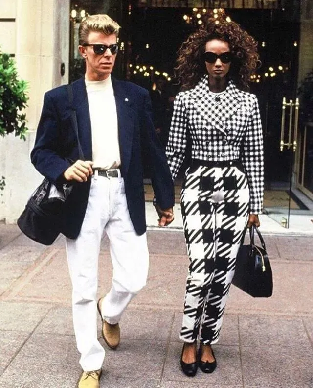 在1992年度假时,David与超模妻子Iman共同选择了Azzedine Alaïa 1991春夏系列中的Tati格纹泳装,高级的海岛风情扑面而来。