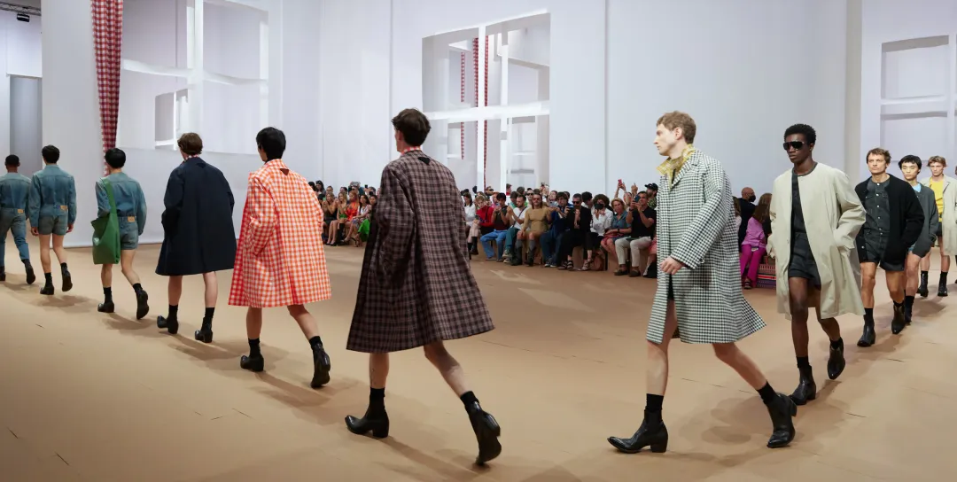 设计师Raf Simons则从Prada的档案库中翻出「超短裤」的基因,和Miuccia一同“怂恿”都市型男们大方露出修长双腿。