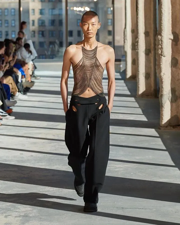 显然,无过多枷锁的设计师品牌会更“野性十足”,将男装拔高至前所未有的「辣度」少而轻薄的布料紧裹着结实的酮体,男性的荷尔蒙气息顿时化作感性之泉,倾泻而出。