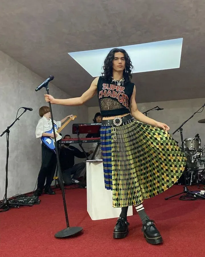裙装依旧能展露出男子气概,裙子来自Chopova Lowena