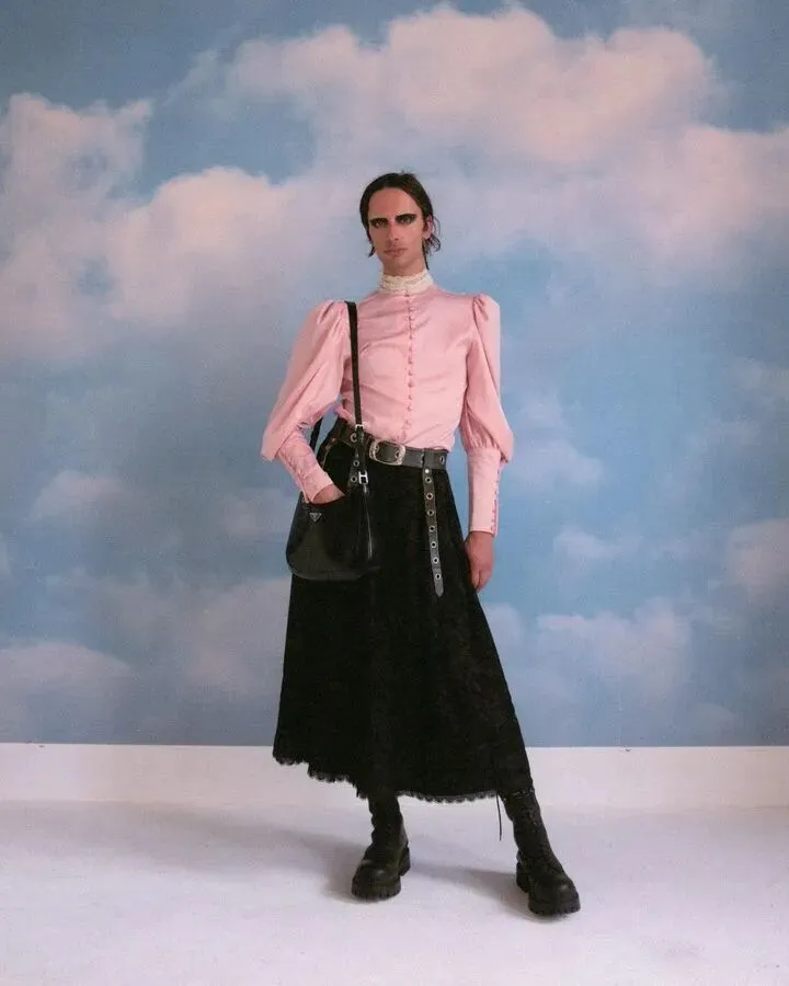 这股中性风潮引领着部分男性勇敢地穿上裙子。对于那些能代表广大千禧一代和Z世代时尚品味流行歌手来说,裙装的强大视觉冲击力赋予他们更先锋的时代面貌,诠释出作为优质偶像应当带头为人类文明的多样性发声。