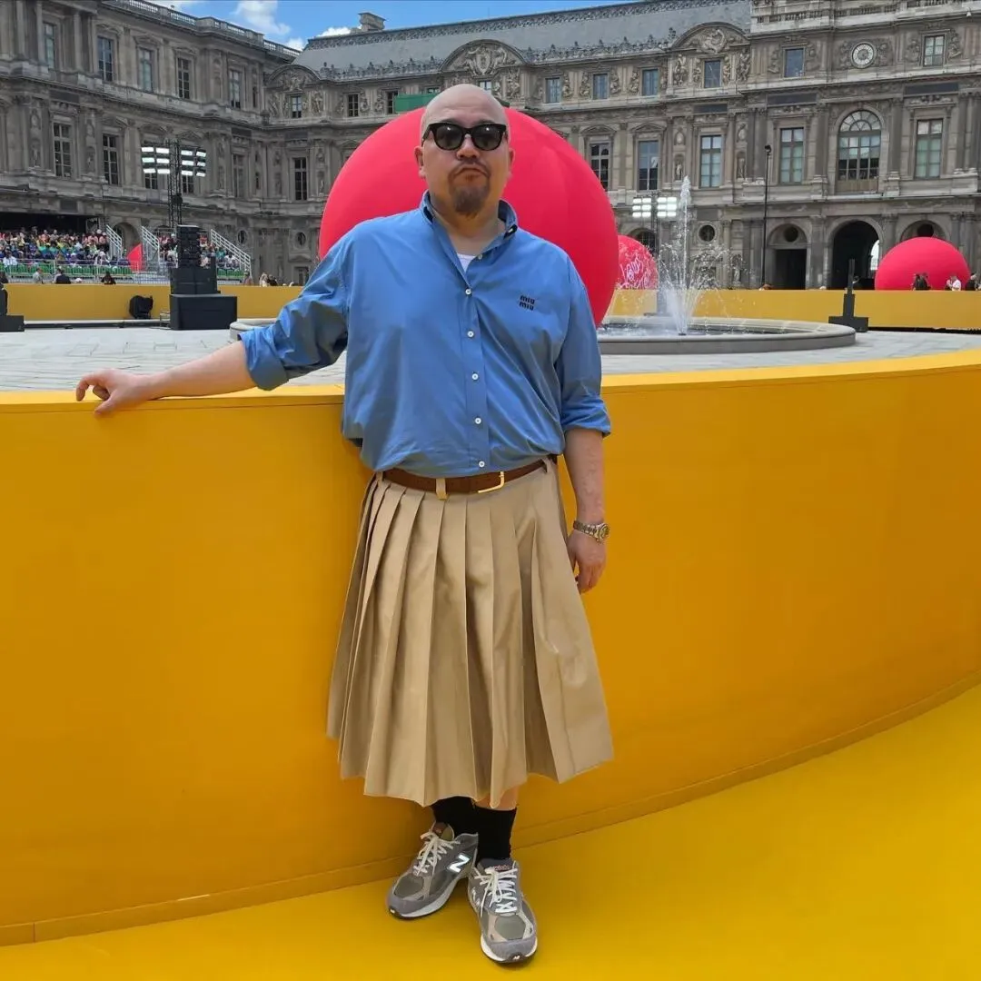 Miu Miu在这两季节还顺势让百褶裙翻红,看到黄伟文的演绎后,肉壮的男生是不是也引得心痒痒想要尝试一番。