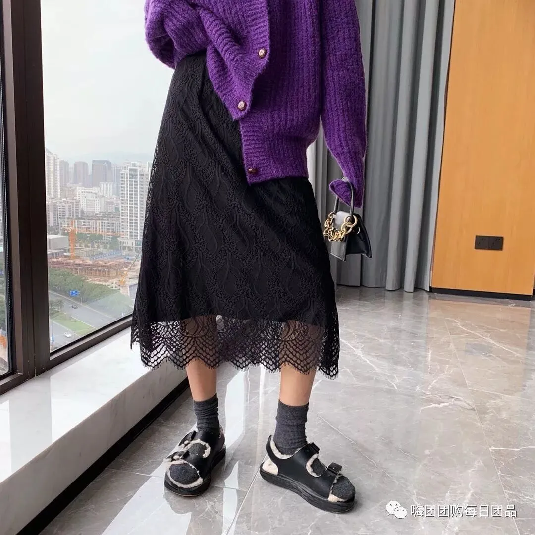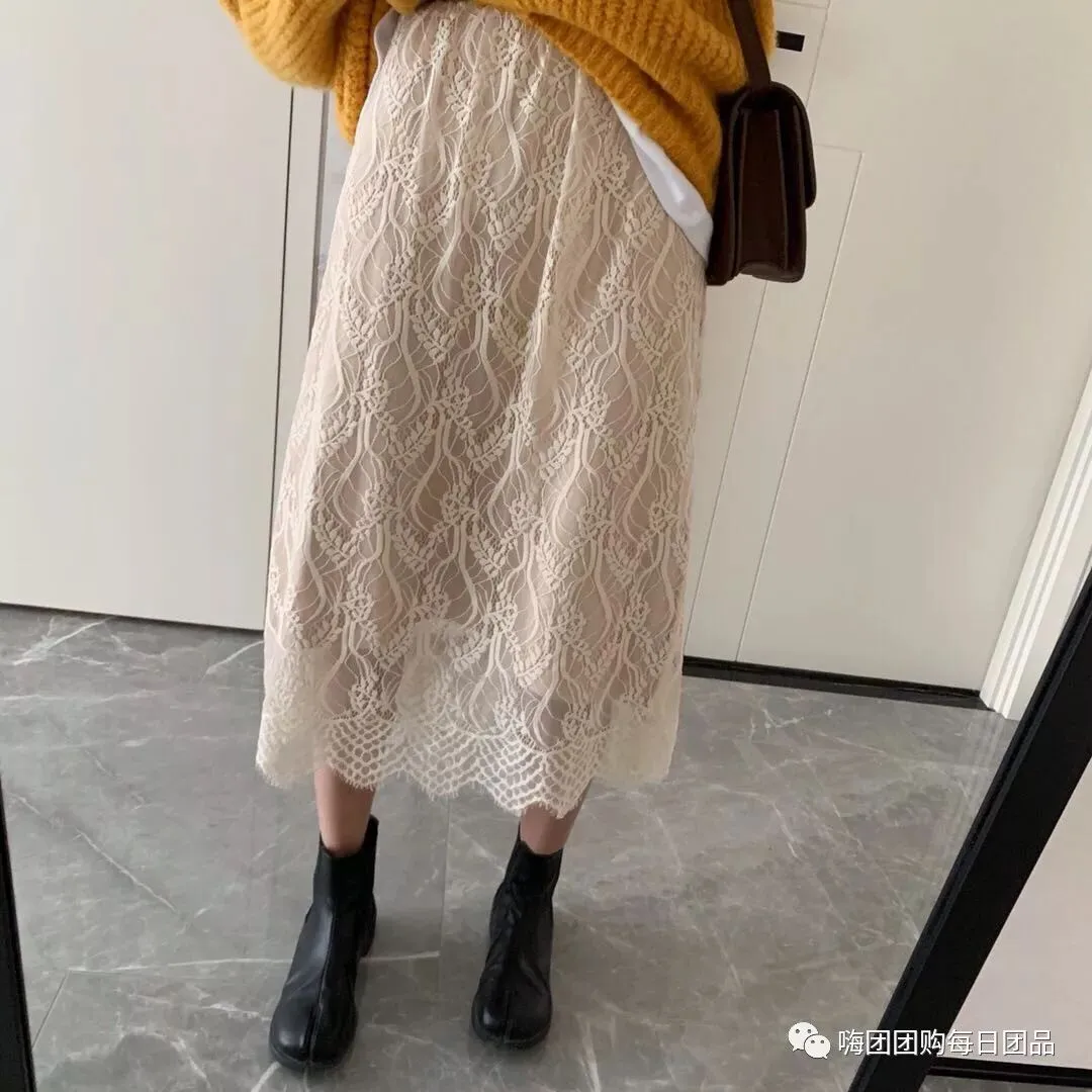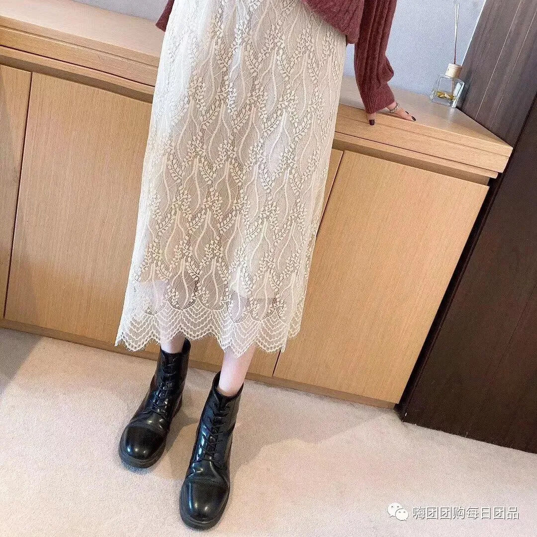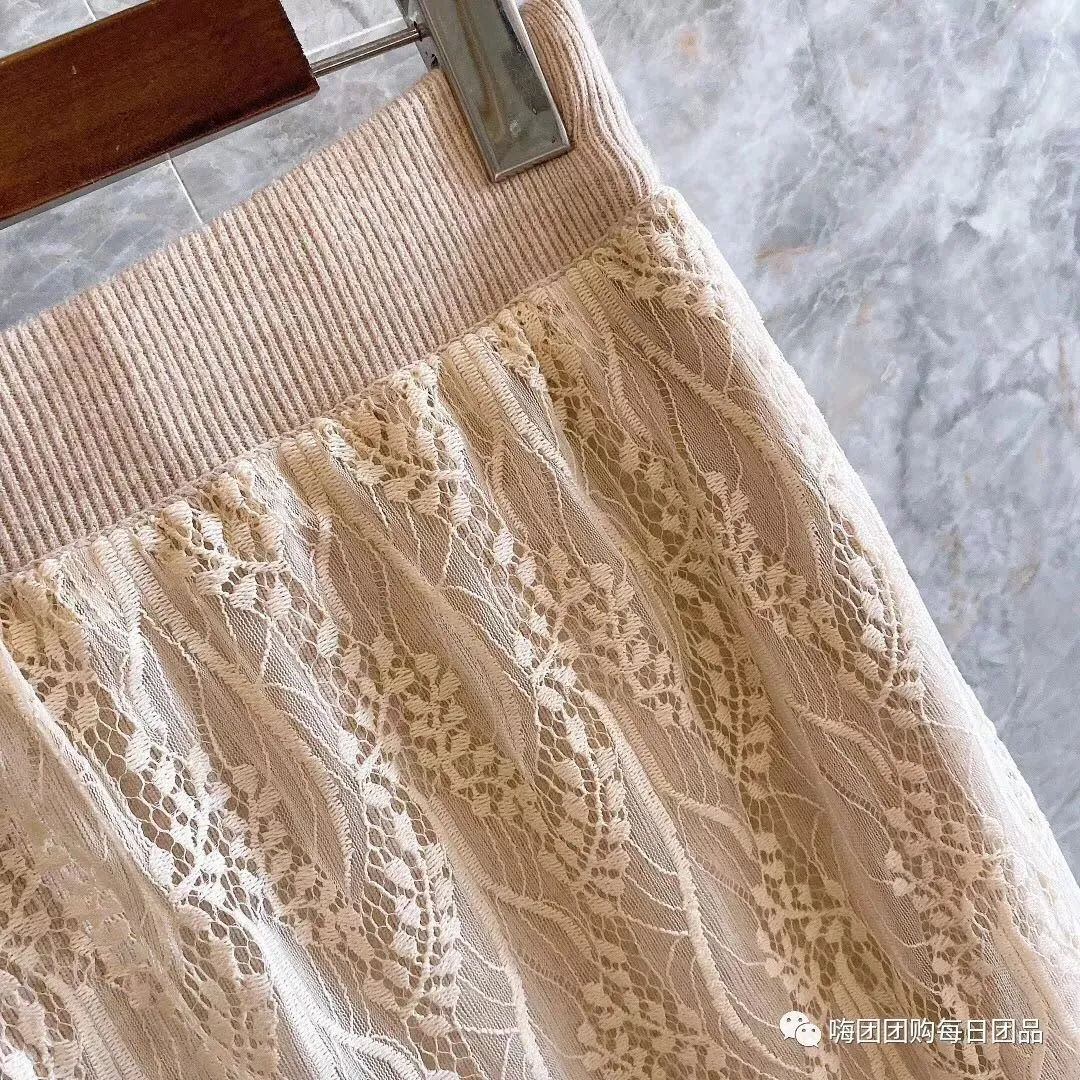 团品:蕾丝勾花半身裙