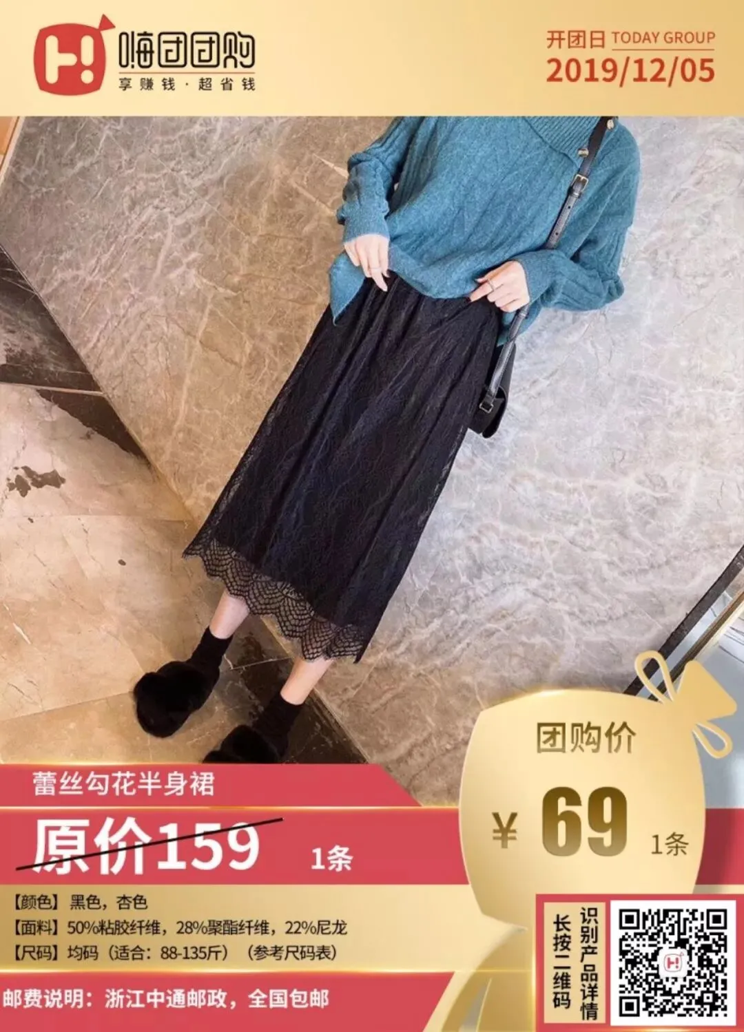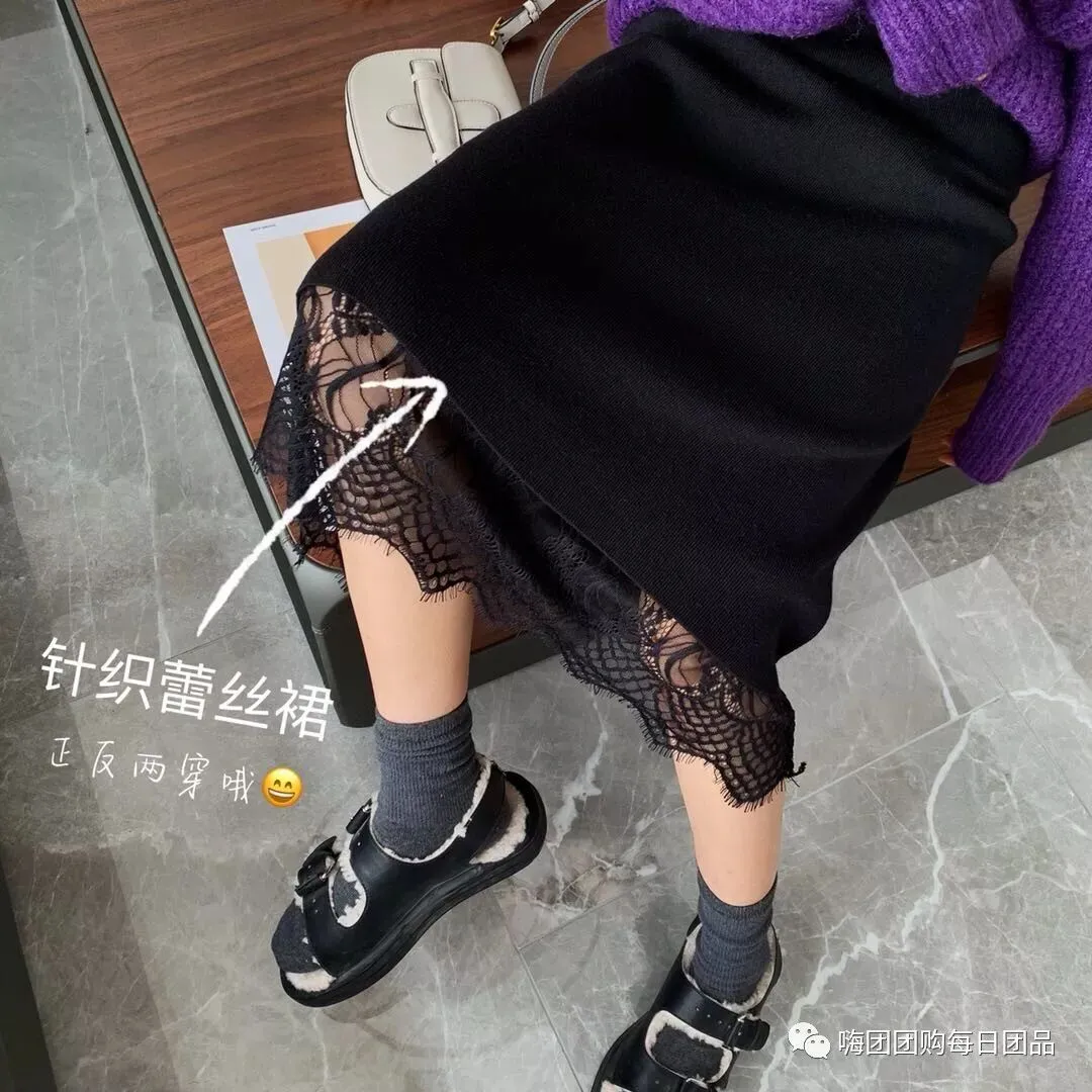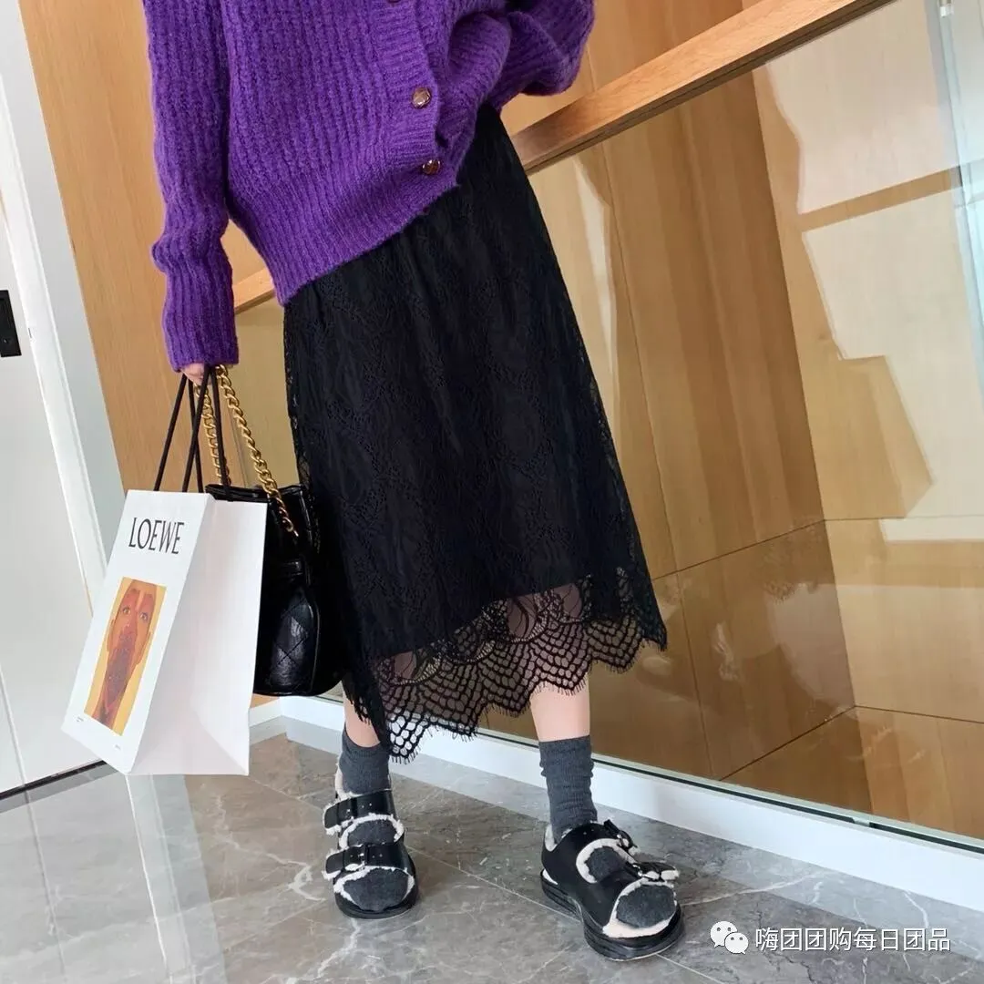 团品:蕾丝勾花半身裙