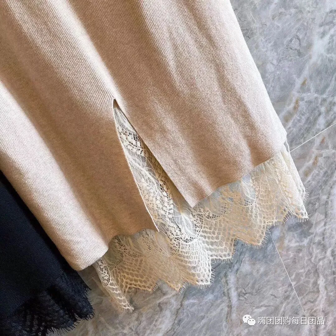 采用蕾丝、针织的对比组合,结果却出奇的好