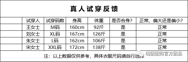试穿反馈:
