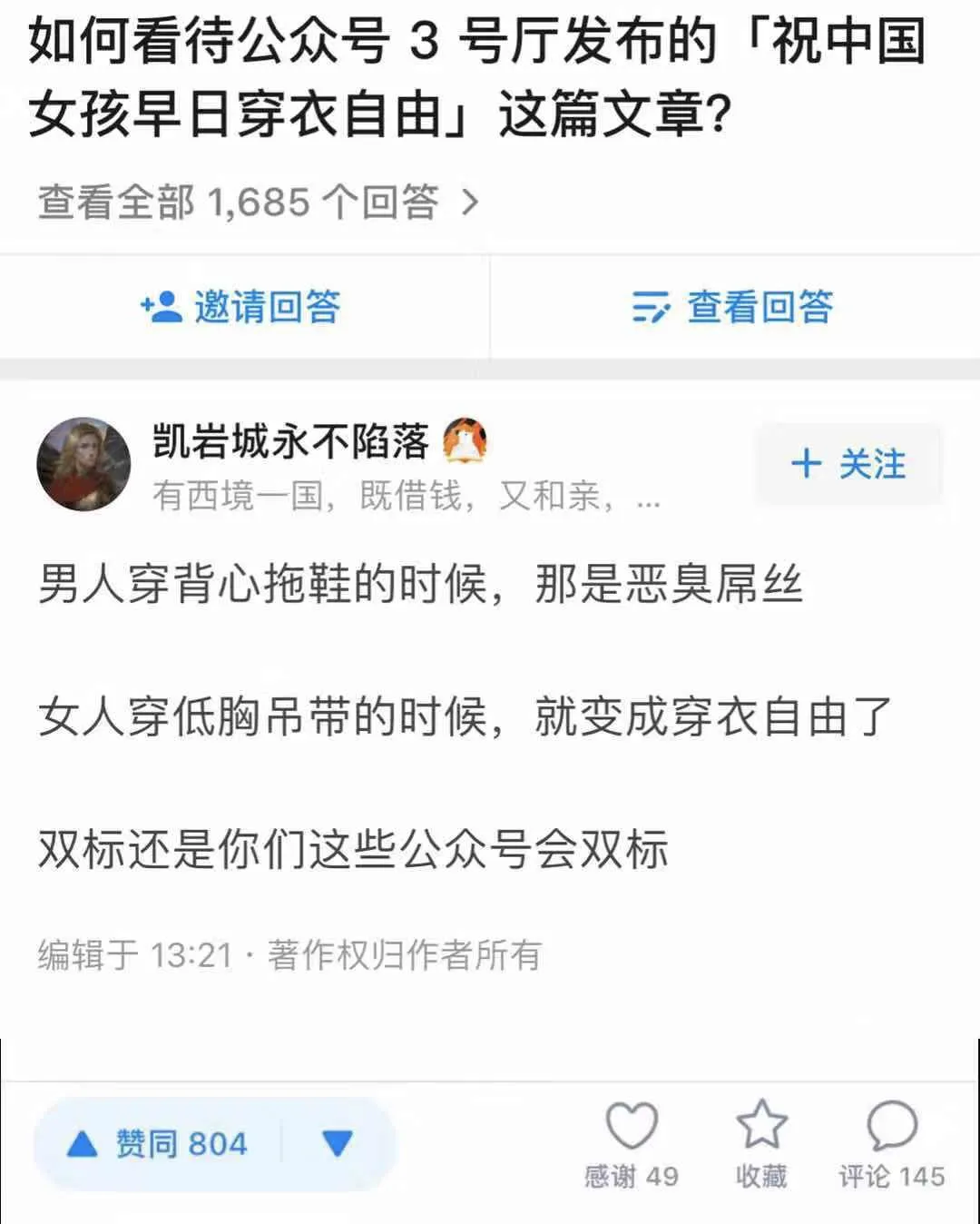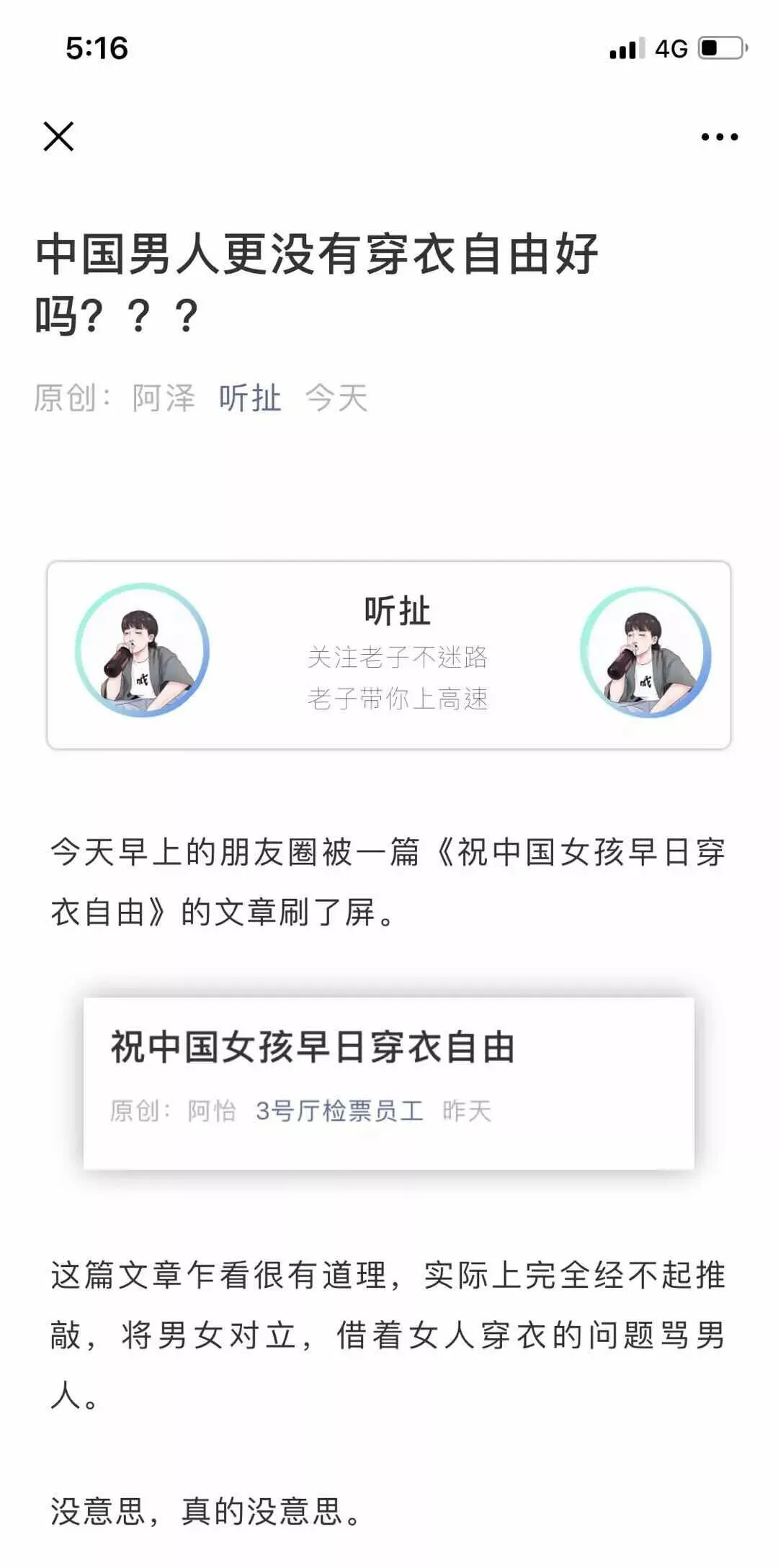 明明我们为了避免两性矛盾,才专门发了两篇文,我们甚至比他们更早在为男性的XX自由说话。